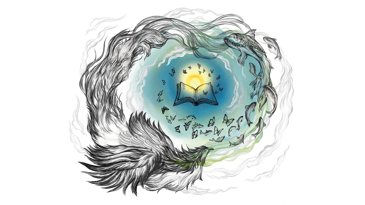 그는 북쪽 바다에서 대기권보다 높은 상공으로 날아올랐다가 다시 머나먼 남쪽 바다로 향하는 모험도 아랑곳하지 않고, 인간과 나비, 꿈과 현실 사이의 경계 따위는 가볍게 뛰어넘습니다.