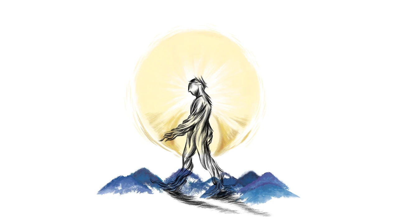 어딘가를 향해 성큼성큼 걸어가는 한 사람.