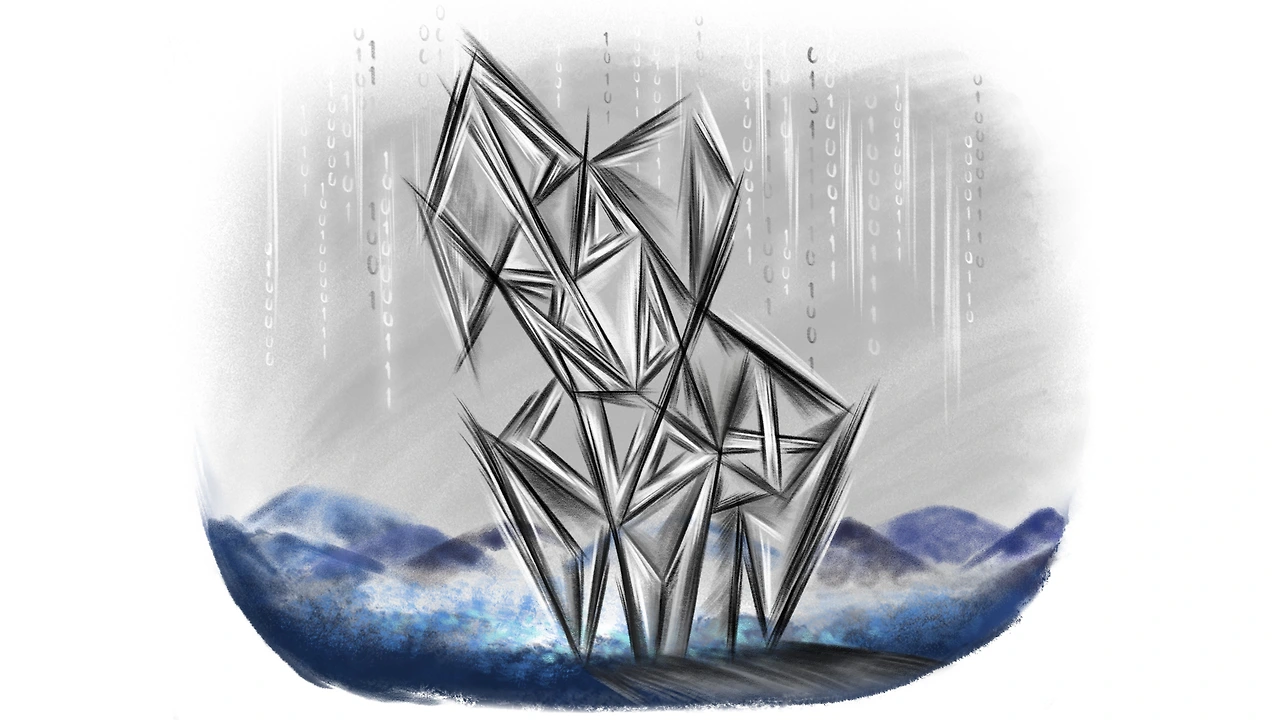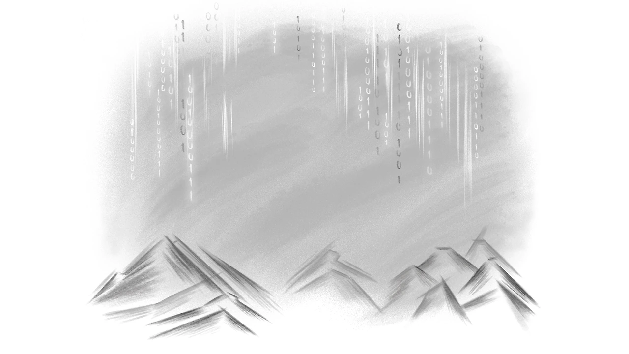 0과 1, 두 숫자들의 행렬이 마치 비처럼 내리고 있군요.