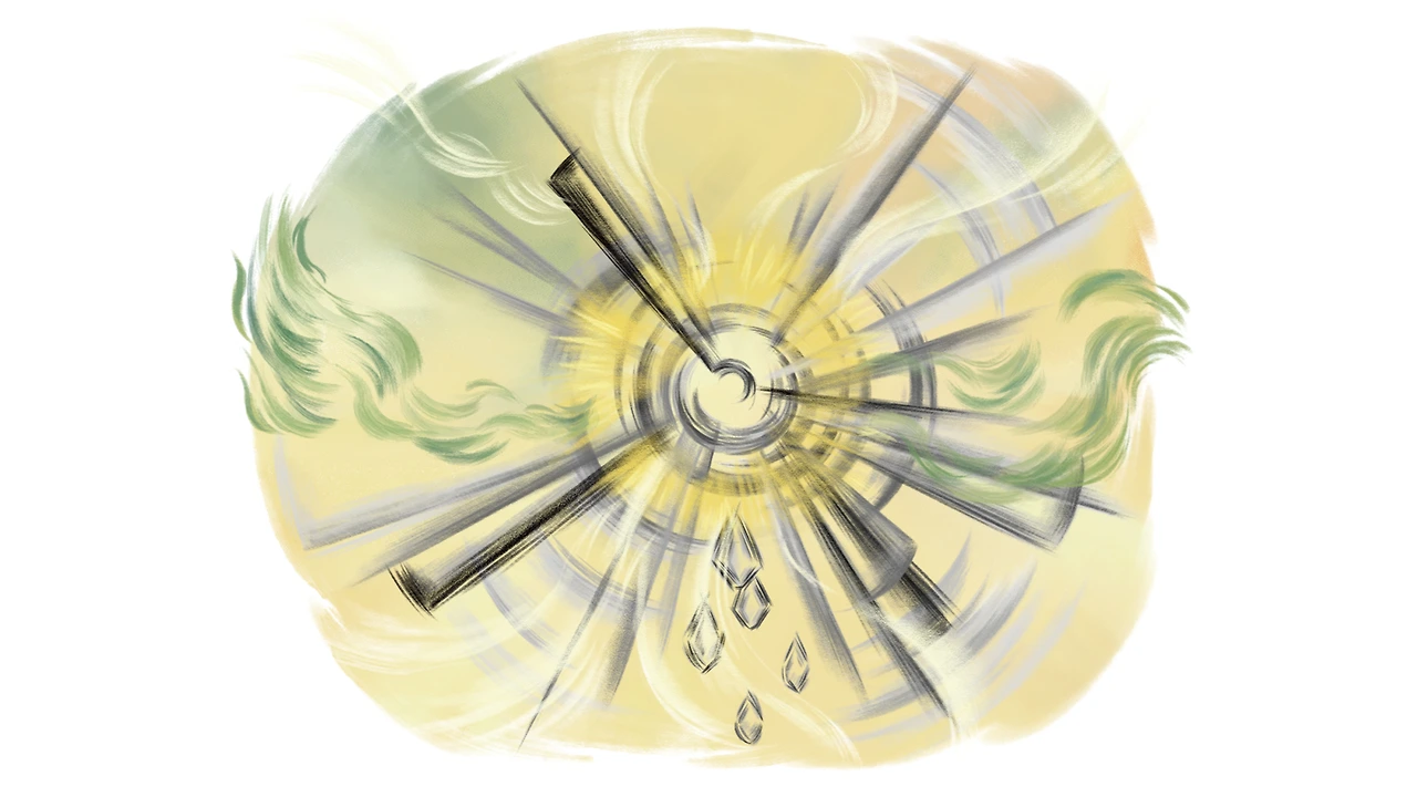 회오리바람이 몰아치듯, 시곗바늘이 회전하듯, 쉴 새 없이 숨 가쁘게 돌아가고 있는 형상. 소란스럽고 번잡한 인간 세상이 연상되는군요.