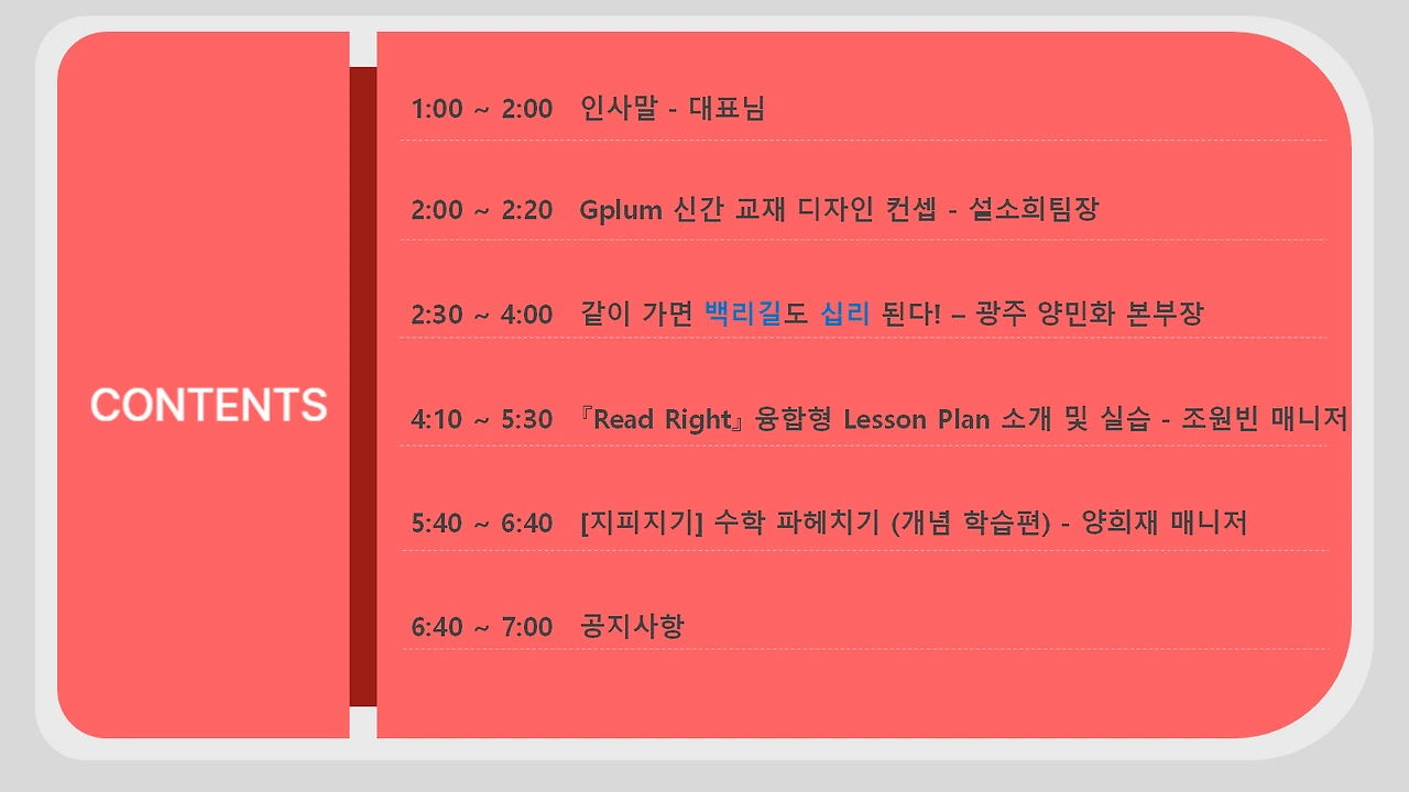~ 지플럼 스페셜 신간교재 Read Right 모델수업