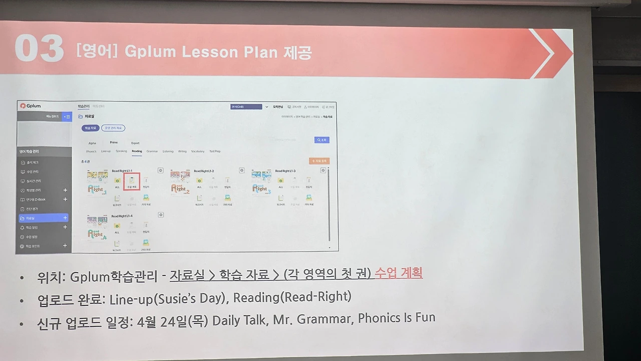 Read Right 교재의 하이브리드 수업은 바로 적용가능하겠네요.