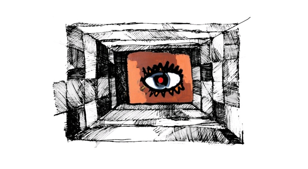 추상 그림은 세상을 비딱하게 사각틀 뒤에서 바라보는 애꾸눈을 정중앙에 배치하여 참주 국가가 비합법적으로 국민을 24시간 감시하고 있음을 표현했다. 사각형의 틀이 반복되면서 점점 커지는 도형을 여러 겹 배치시켜, 참주 군주는 국민들을 권력을 힘을 이용해서 억압하는 공포정치를 점점 키워나간다는 점을 표현했다.