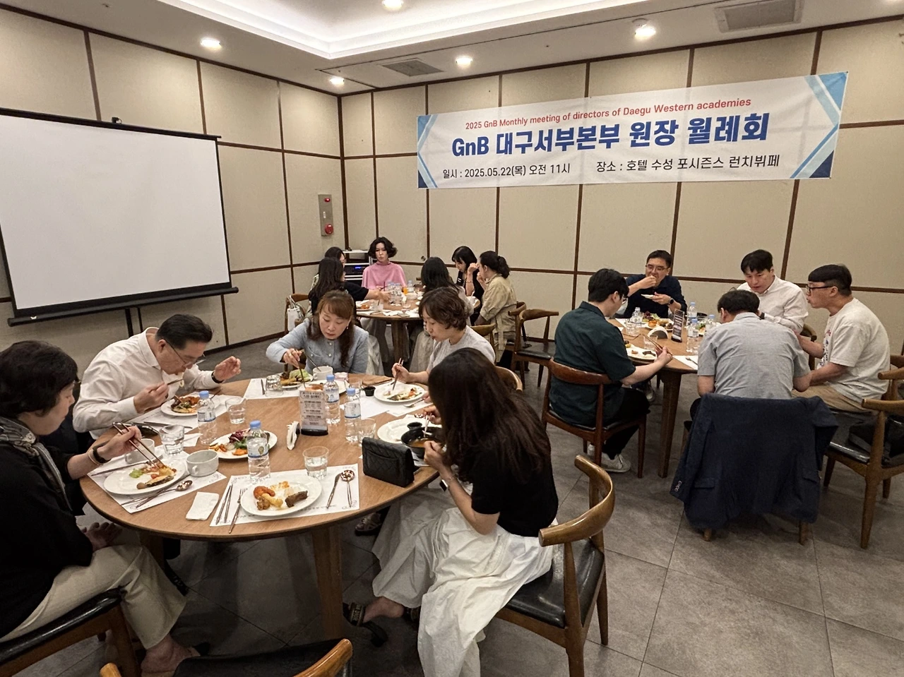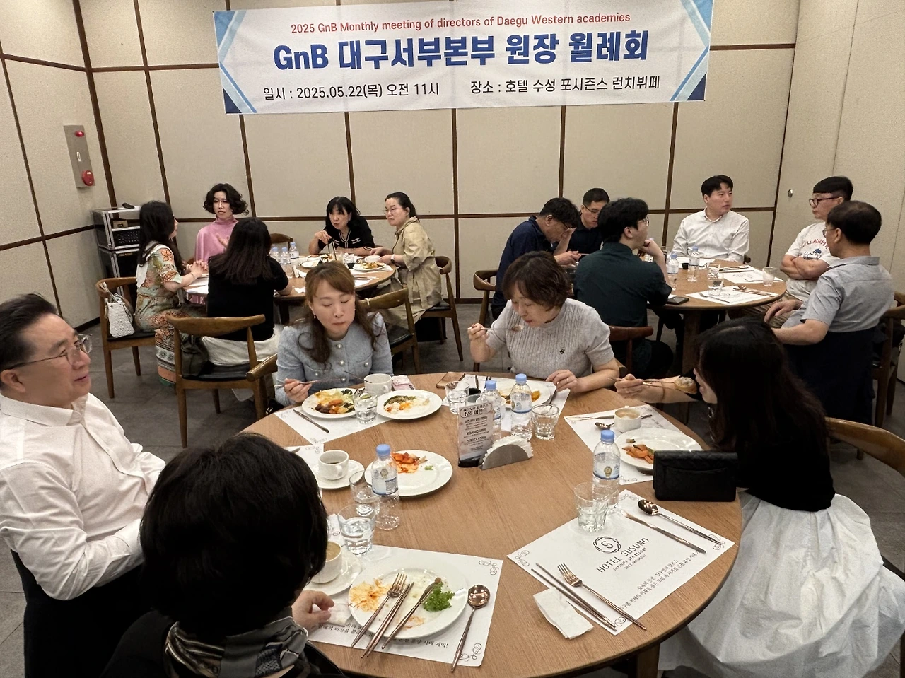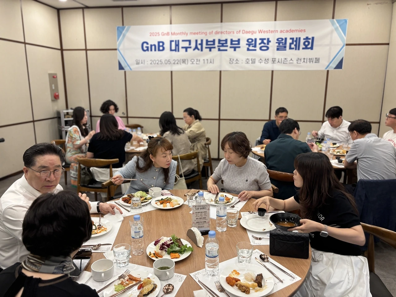 오늘 진행된 GnB 대구서부본부 원장 월례회 및 오찬 모임은 원장님들께 쉼과 공감, 격려와 열정을 나누는 뜻깊은 시간이었습니다.