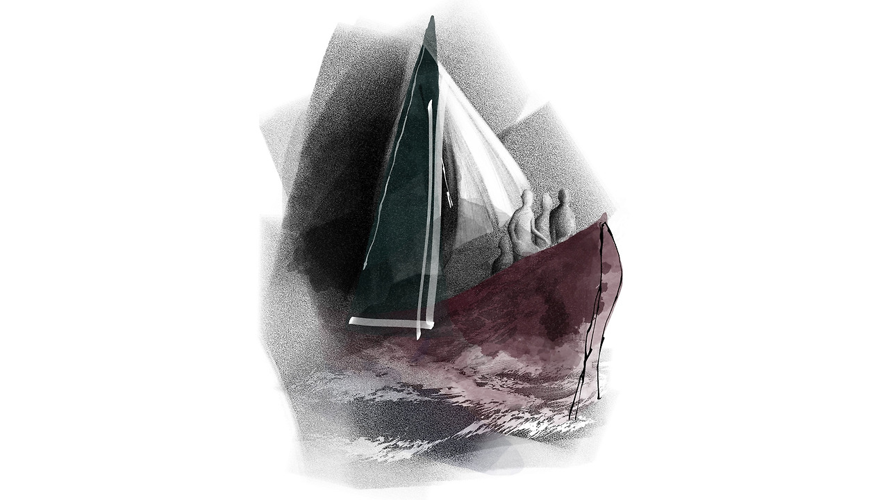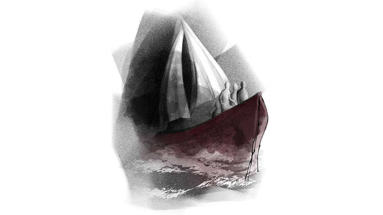 풍랑은 금방이라도 배를 침몰시킬 듯이 거세지만,