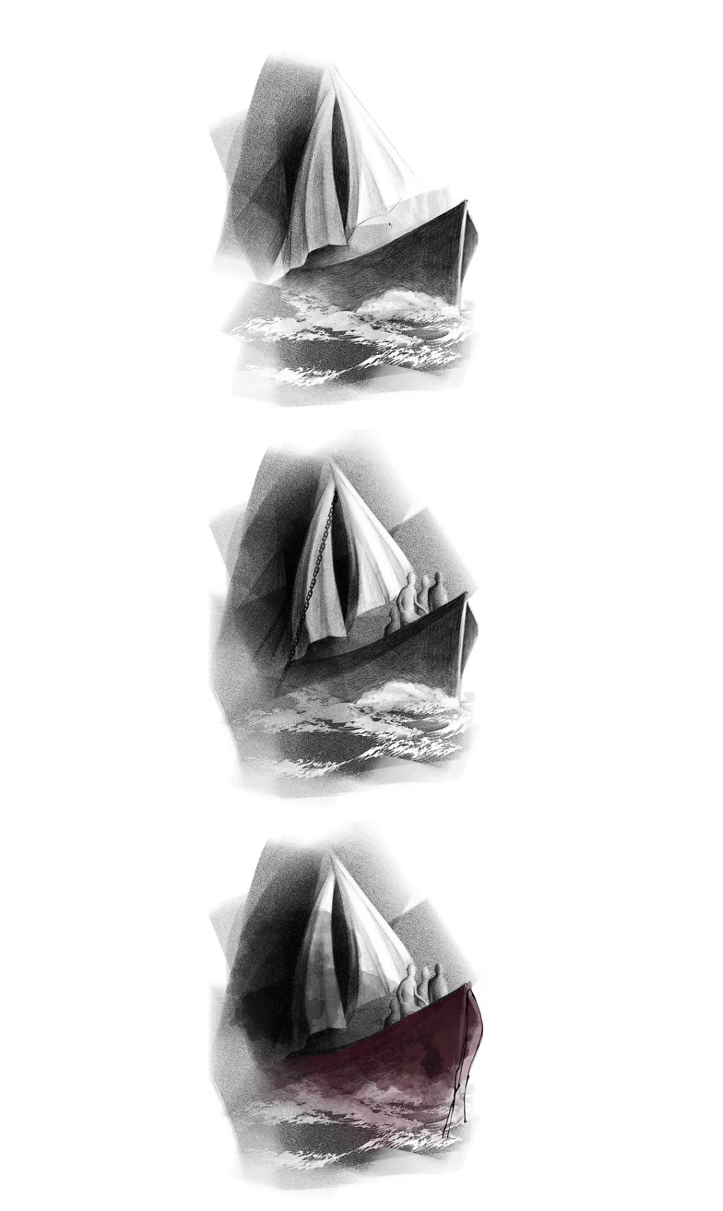 배를 받치고 있는 ‘흰 파도’는 시민의 마음에 새겨진 법인 도덕과 관습, 여론을 가리킵니다.