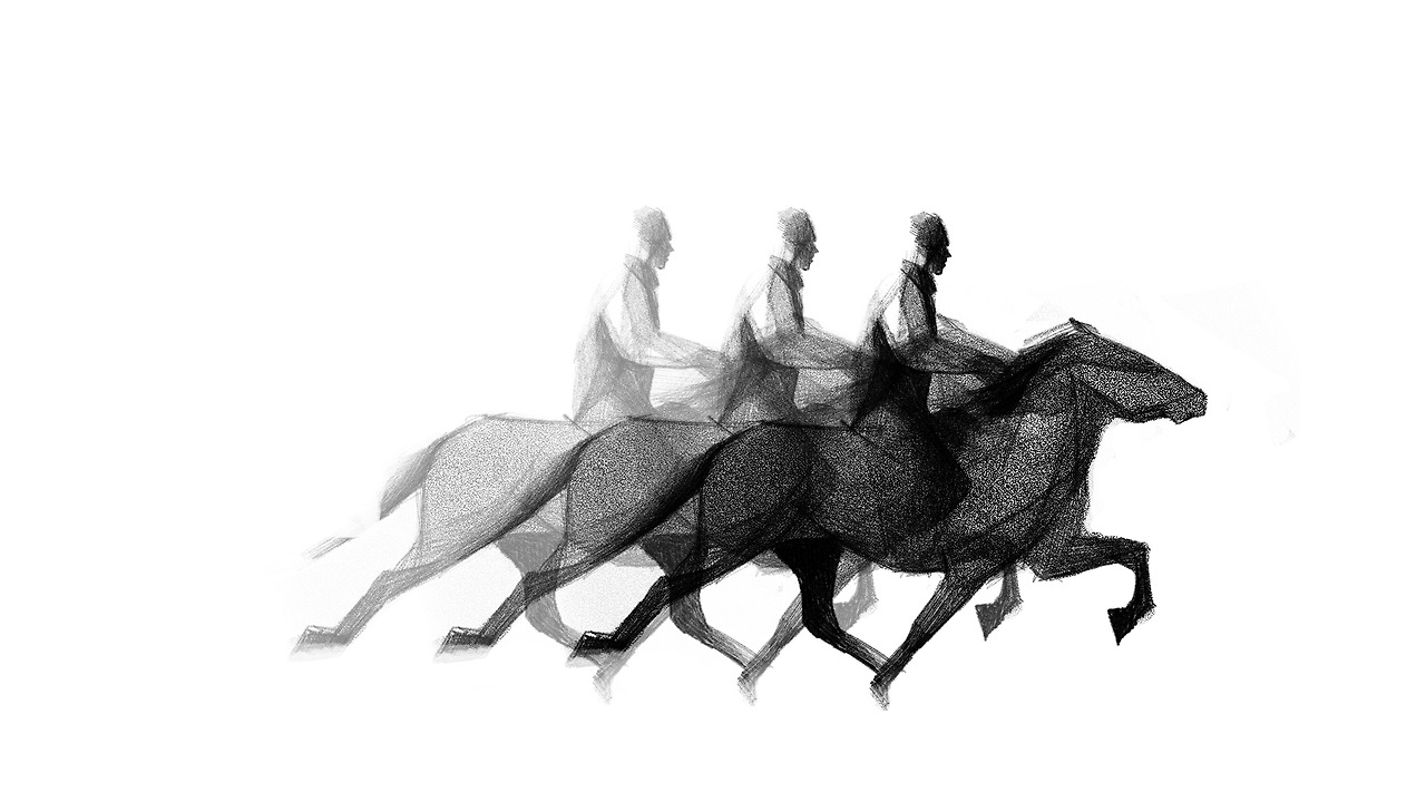 말을 탄 채 어디론가 달려가는 사람들.