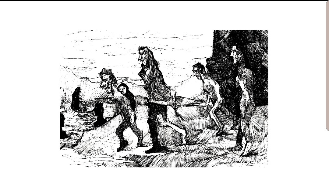 추상 그림 2는 각각 천당과 지옥에서 1000년을 살다 온 영혼들은 새로운 운명을 선택하기 위해, 운명의 여신 아난케의 세 딸 앞으로 가서 정렬한 것을 표현하였다.