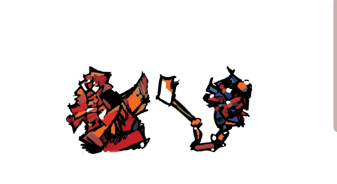 추상 그림 4는 이제 아트로포스가 영혼들이 각자 선택한 운명의 실을 가위로 자르며 다시는 각자의 영혼이 선택한 운명을 되돌리지 못하도록 한다는 것을 표현하였다.