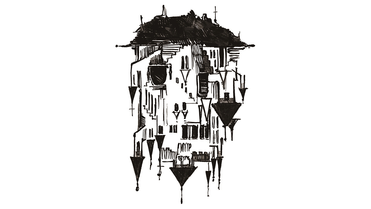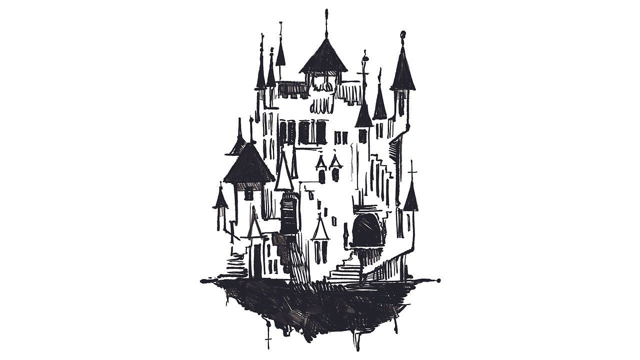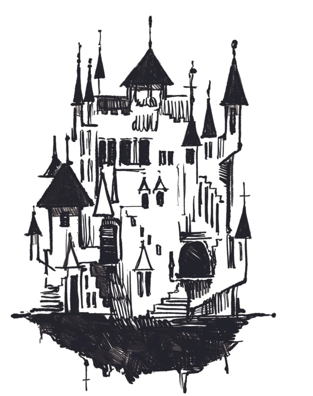 성 아래의 땅은 허공에 둥둥 떠 있습니다.