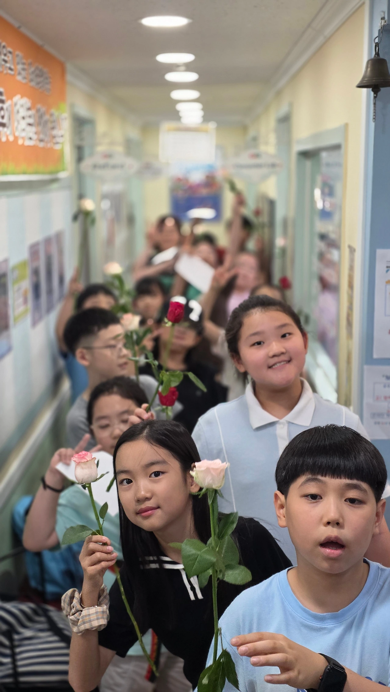 모두 장미 한 송이씩을 들고 환영해 줘서
