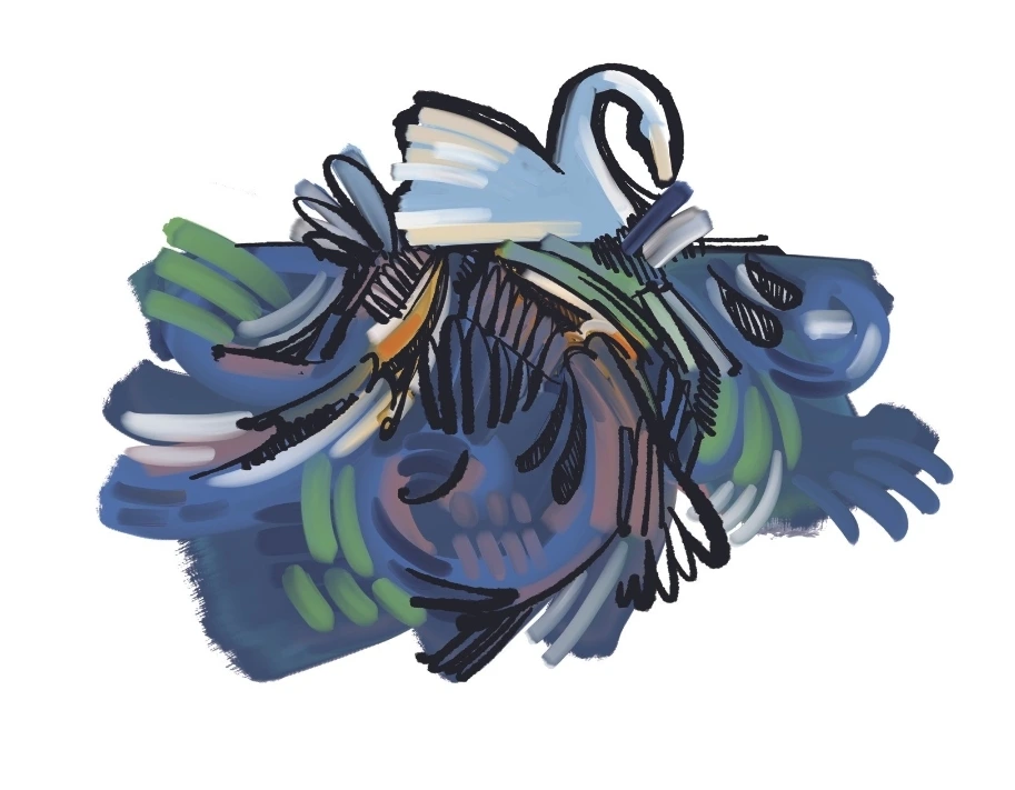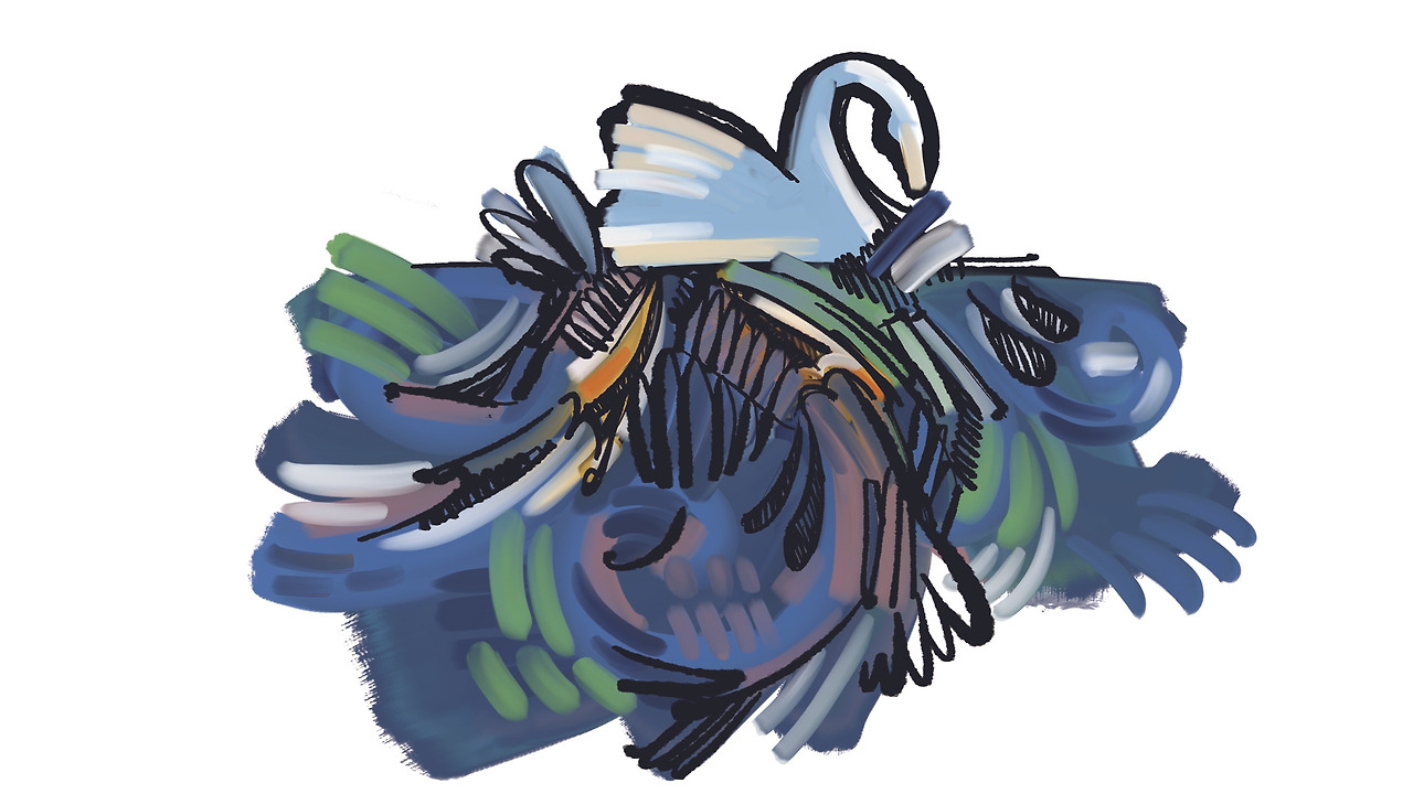 수면 아래 백조의 발이 온통 어지럽게 채색되었습니다.