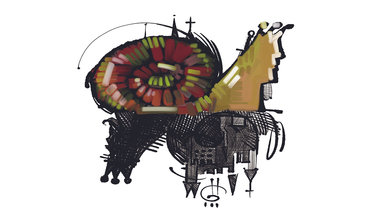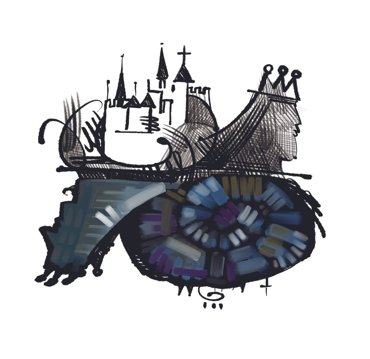 왕관을 쓰고, 성을 짊어진 달팽이.