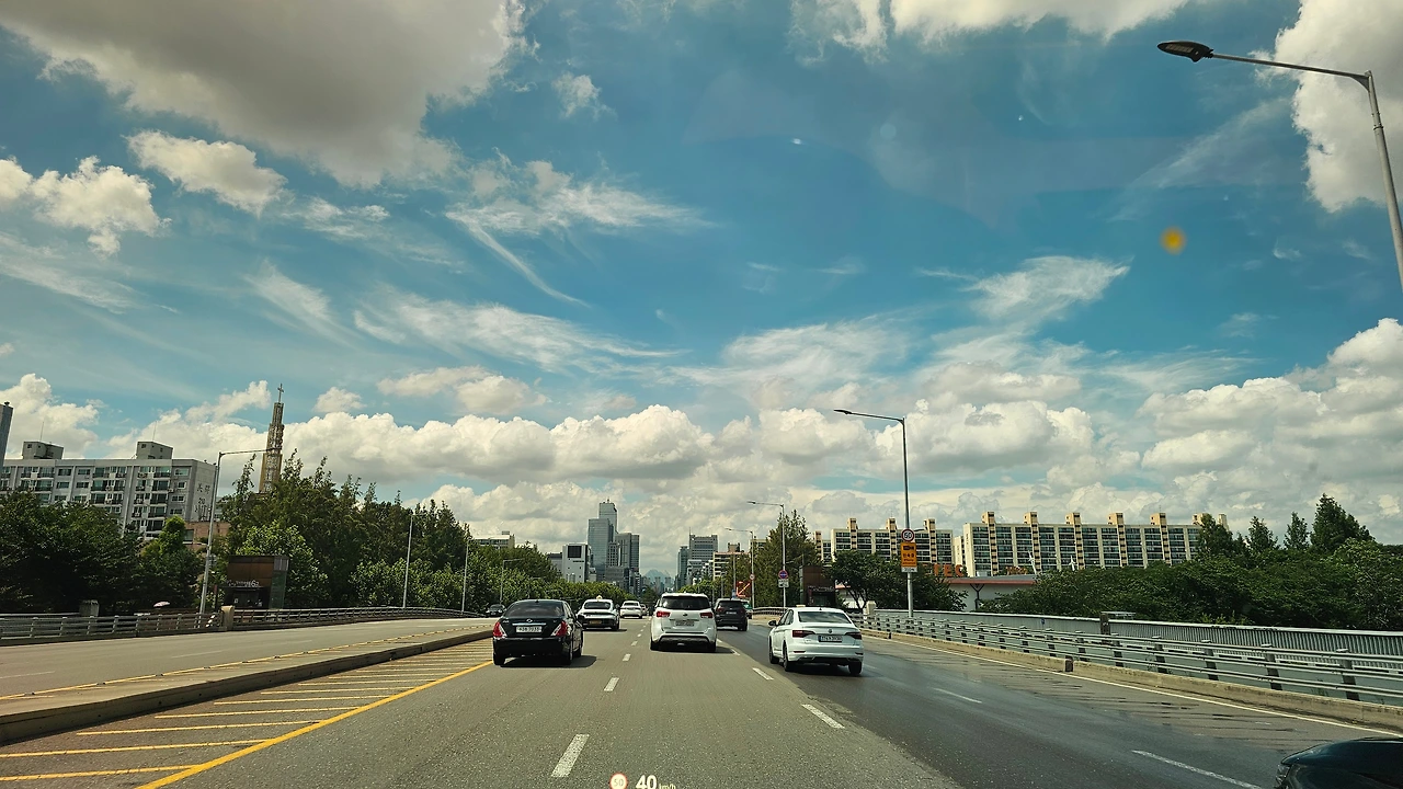 청푸른 하늘 위로 뭉게구름이 둥실둥실 떠다니는 하늘 아래에서 매일 출근하며