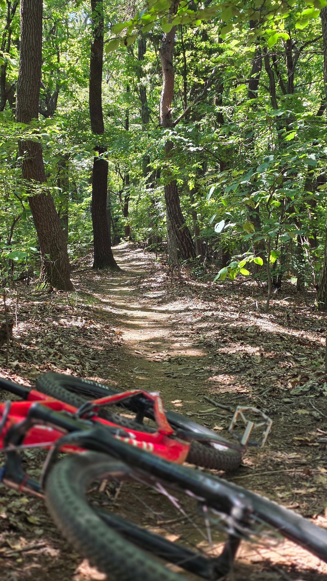 MTB로 두 발의 원초적 동력으로 힘들게 산을 낑낑 올라가는데 전기 MTB로