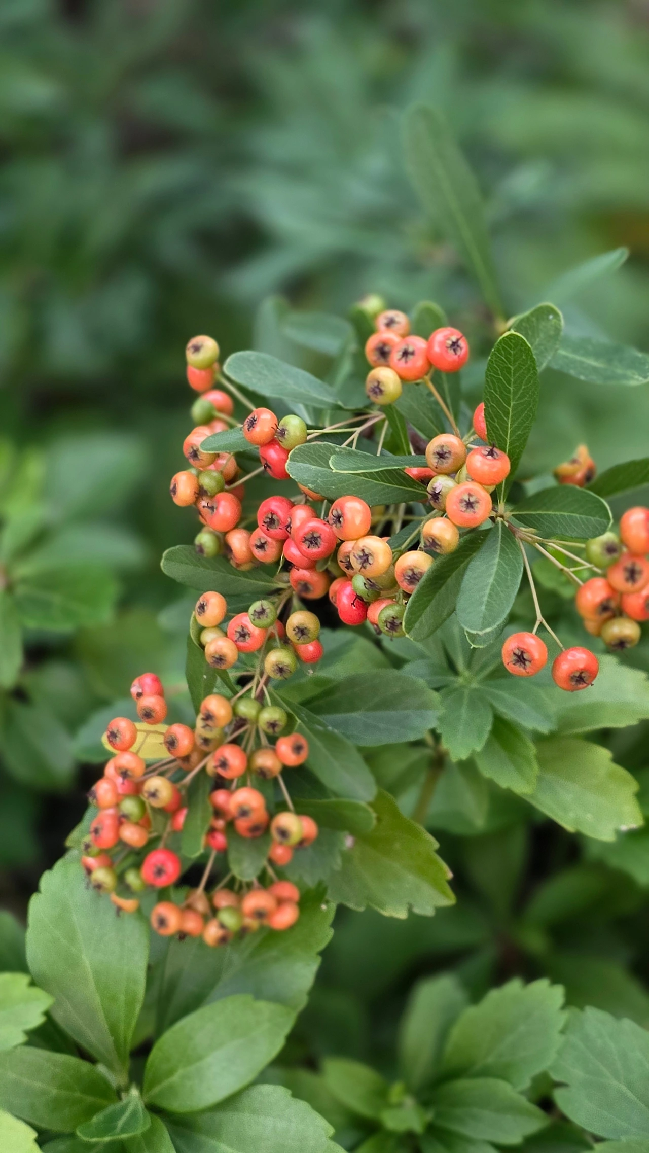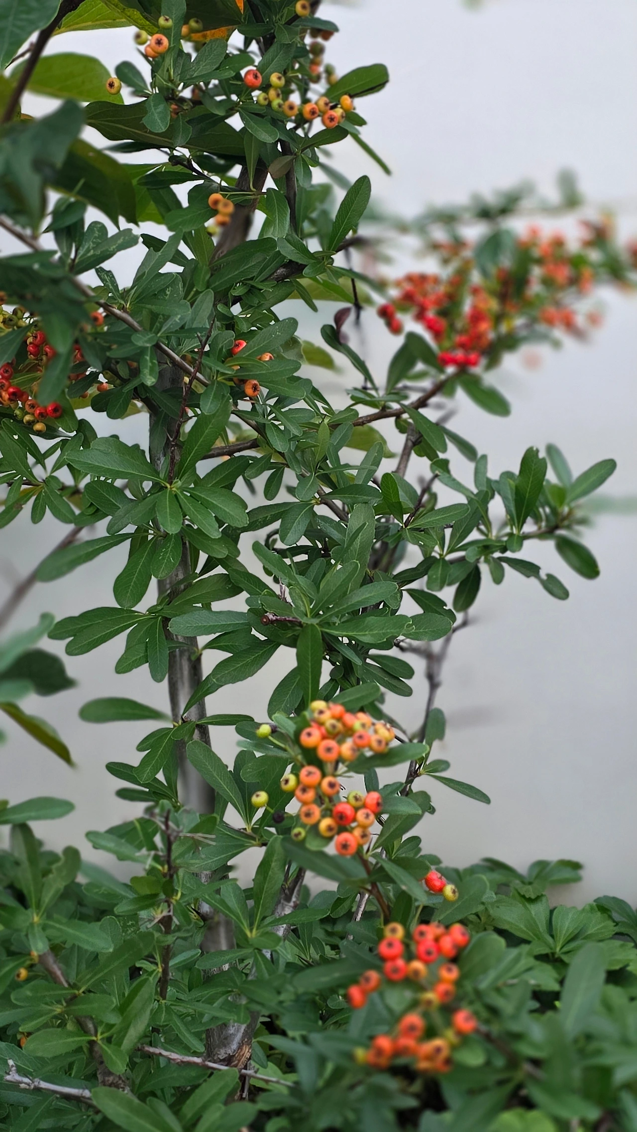 Photo by Plato Won,피라칸다는 꽃말이 '알알이 영근 사랑'으로,꽃과 열매가 아름다워 사계절 관산용 나무다