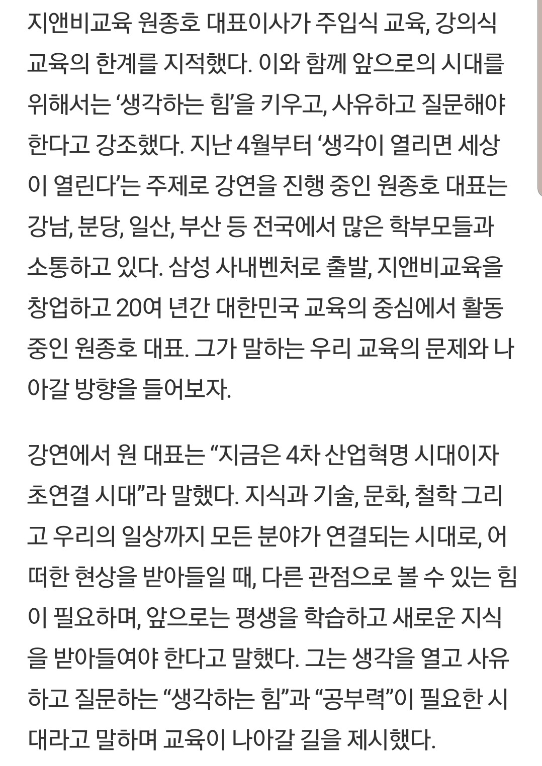 지앤비 원종호 대표 '패럴랙스 생각열기 학습법'으로 현 교육 일침
