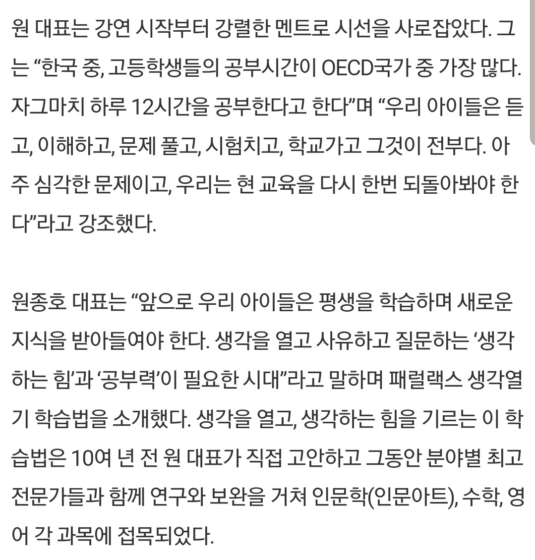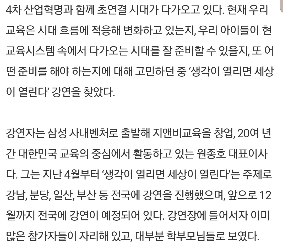"초연결 시대 대비해야"..원종호 대표'생각이 열리면 세상이 열린다'강연