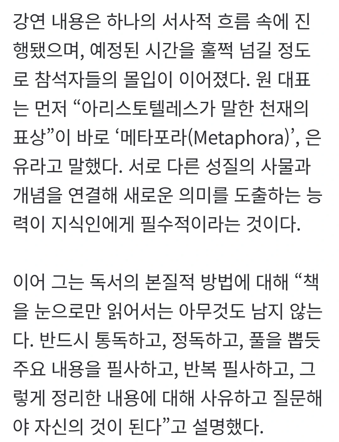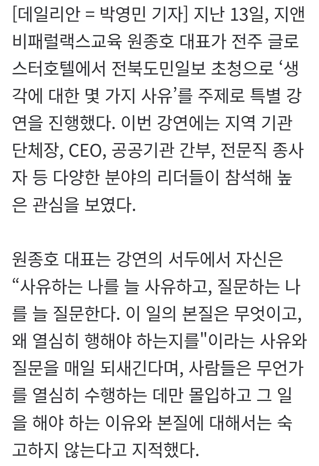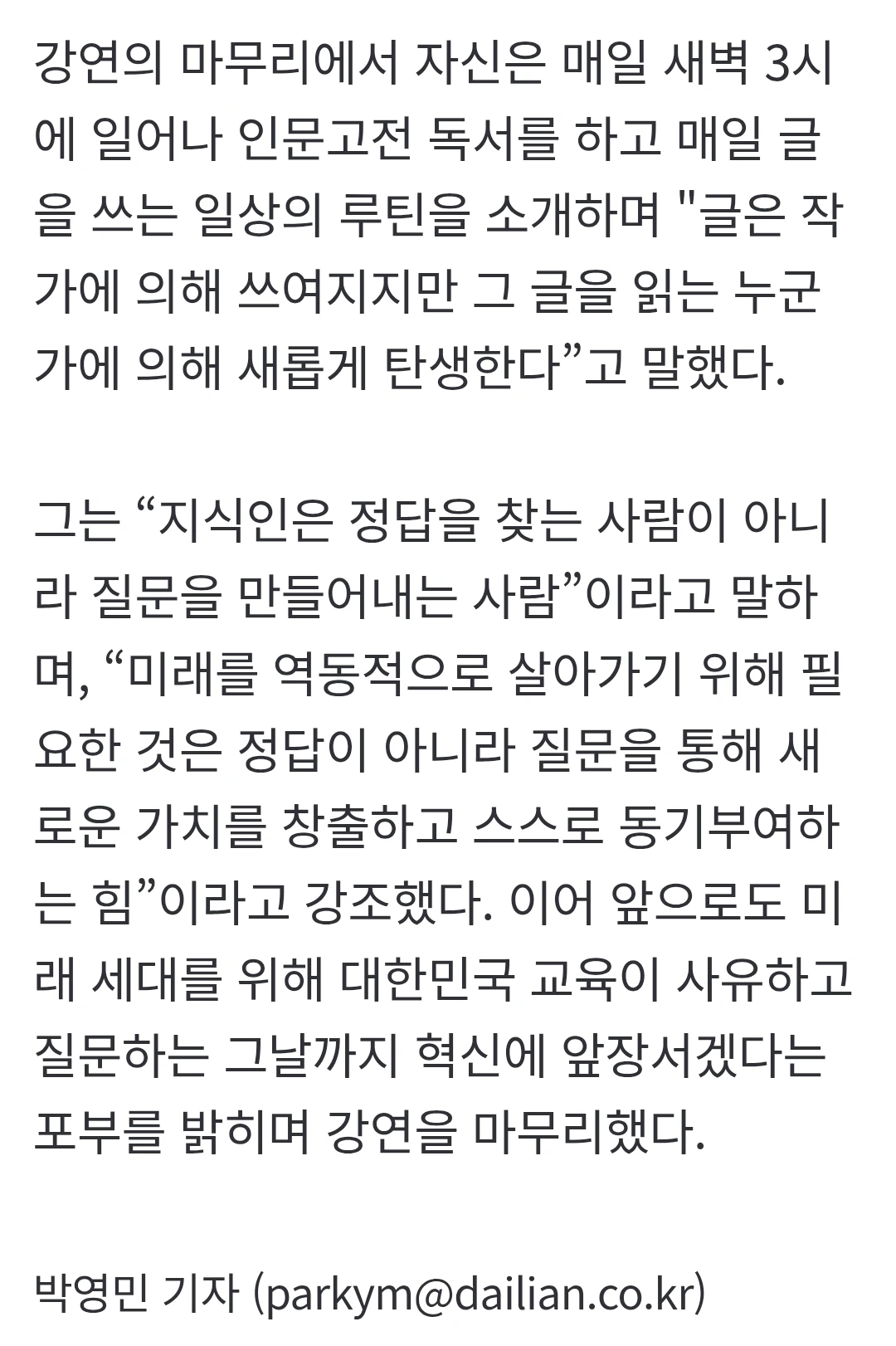 '생각'에 대한 몇 가지 사유 생각열기 강연 신문기사