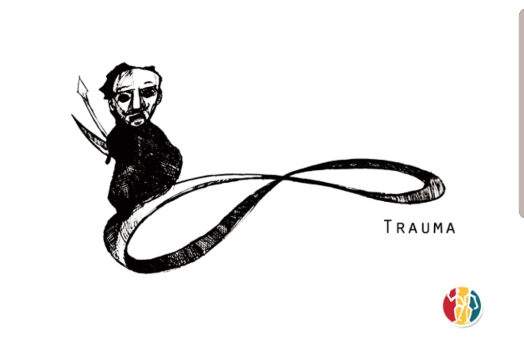 그림 1. 뫼비우스의 띠 위에 등에 칼을 찬 스케치 그림
