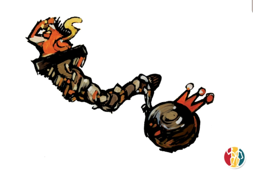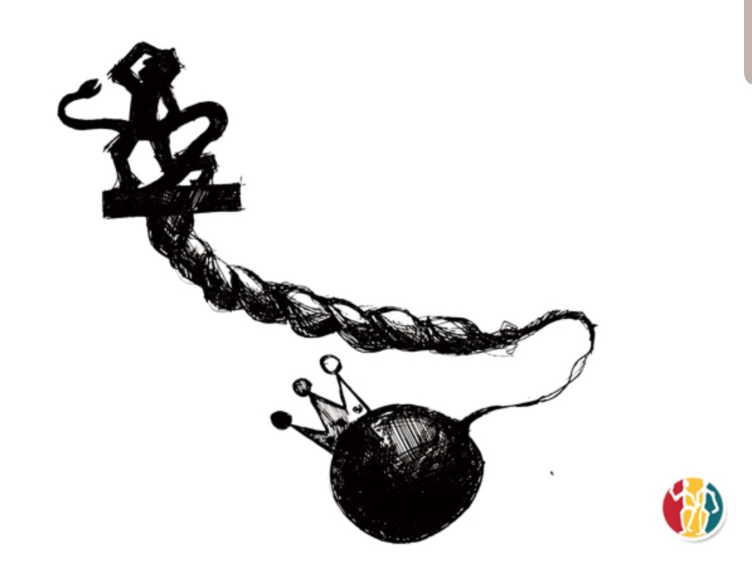 강력한 절대군주 일인이 완벽하게 지배하는 국가를 편입한 혼합 군주국의 형태도 있습니다 조각그림은 큰 방울에 왕관을 쓰고 줄에 붙여 매달려 있는 스케치로 강력한 절대군주가 지배 하는 나라를 편입한 혼합 군주국을 표현하였 습니다.