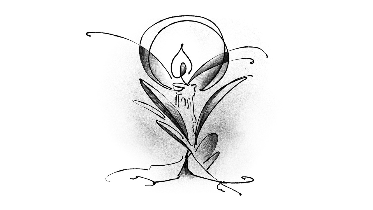풀 위로 꽃처럼 피어오른 촛불 하나.