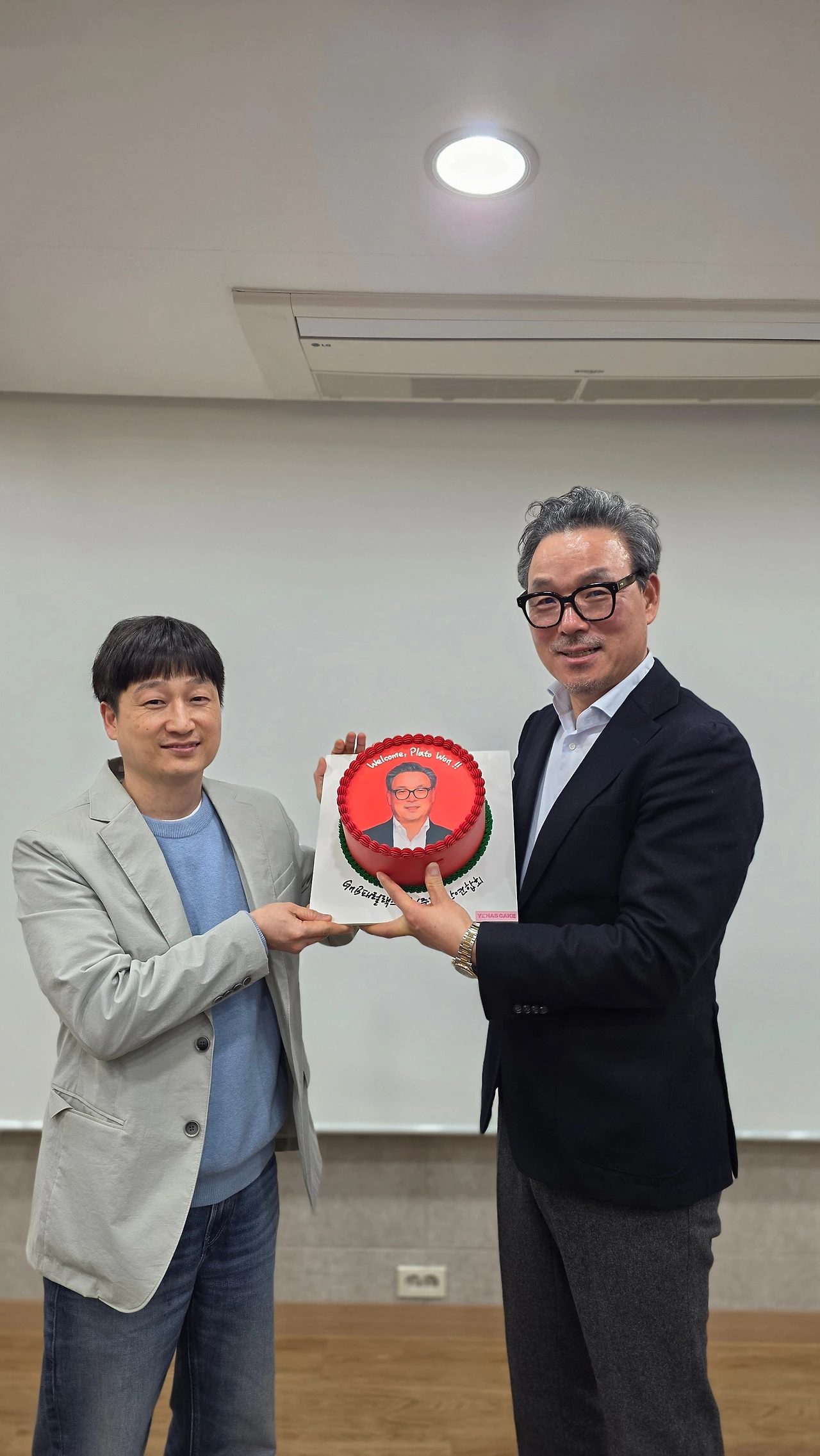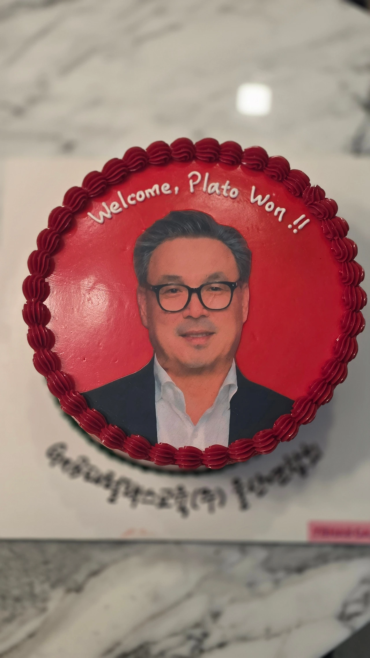 우리 아이들의 영혼을 지혜에 배고파하도록 붉게 물들이겠다는 의지를 상징하는 GnB패럴랙스 붉은색 케익 선물,원장님들 정성이 가득^^