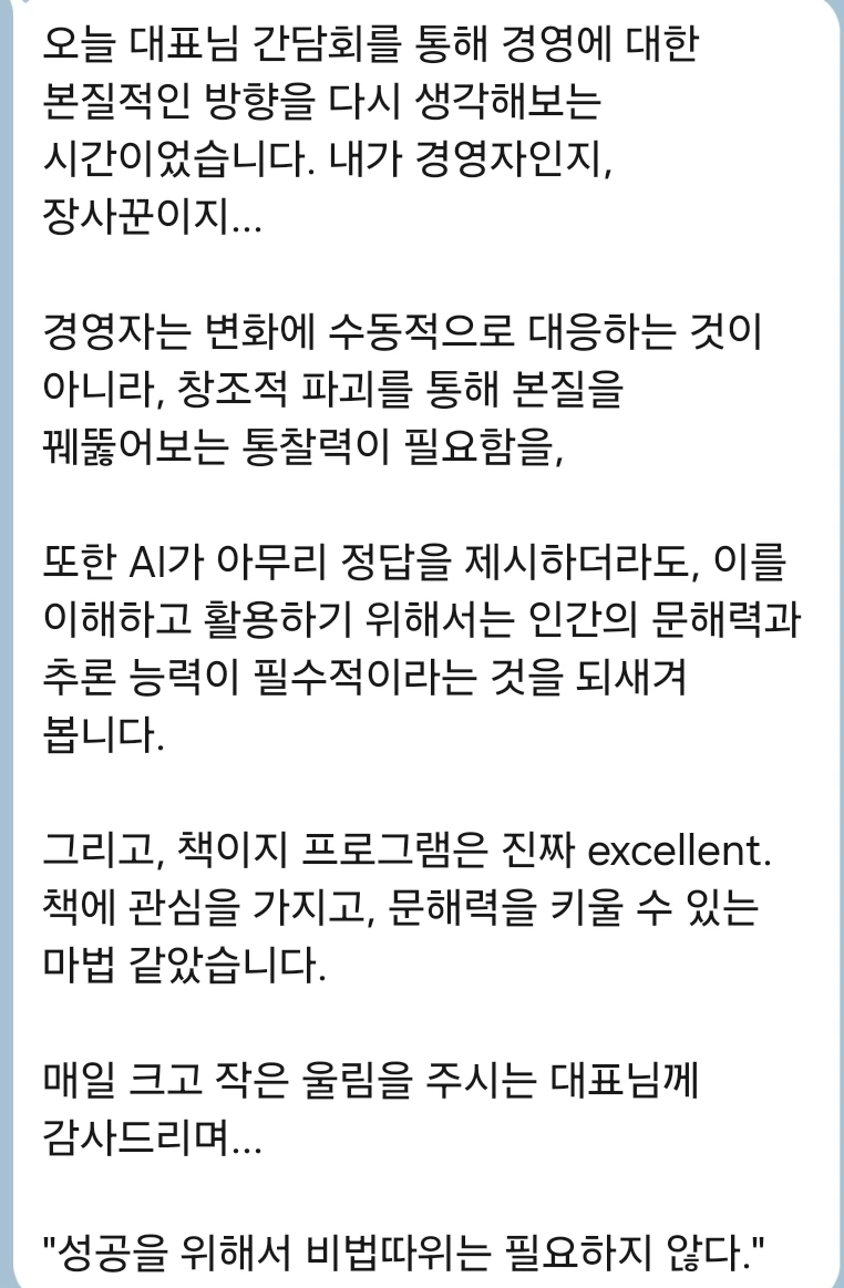 핑계 대지 않고 오히려 성장의