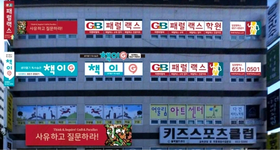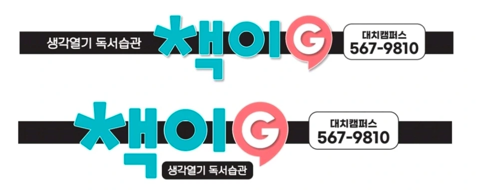 '책이G' 로고,색상,캐릭터로 디자인 한 내부 인테리어