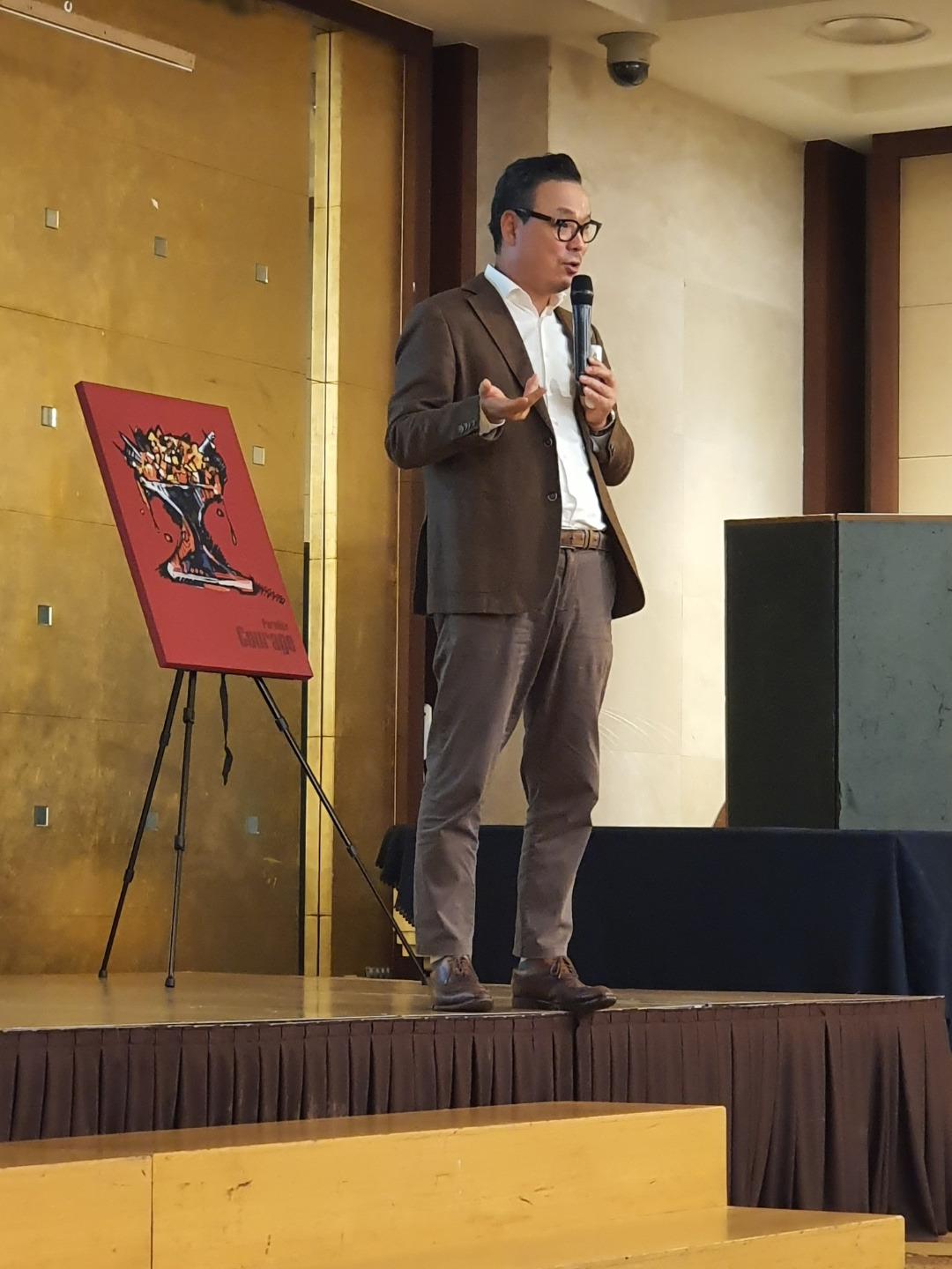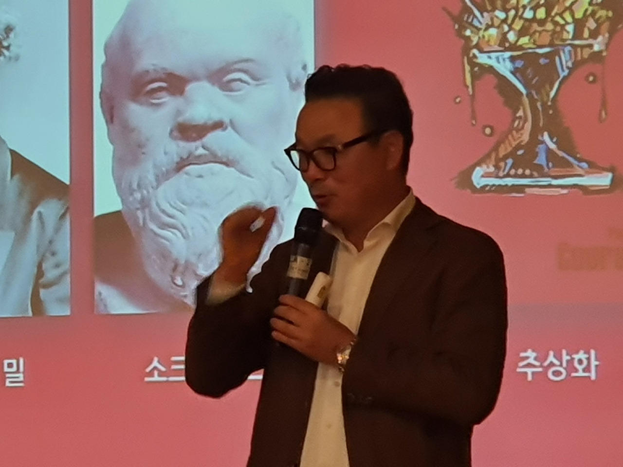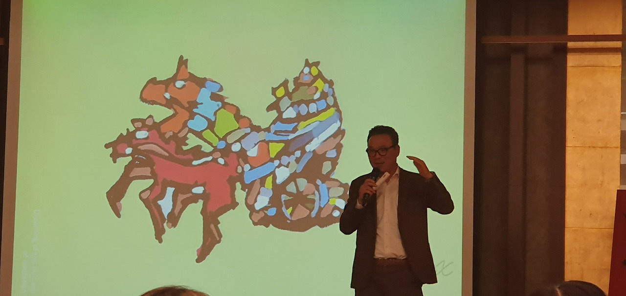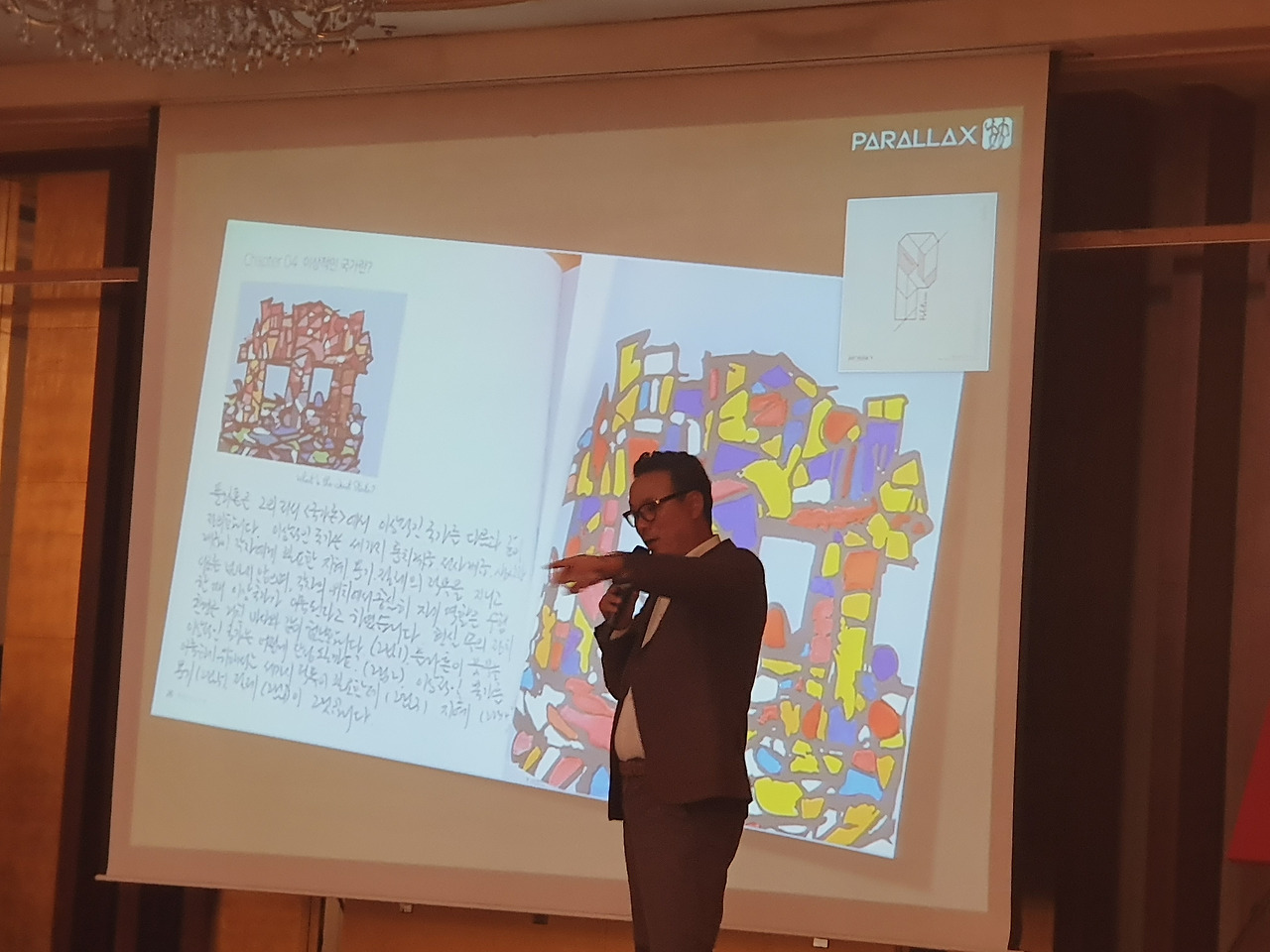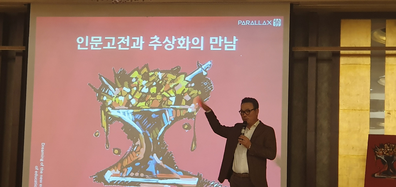 추상화는 구두 모양의 이탈리아 반도에 왕관을 쓰고 있는 교황을 십자가로 표현하였으며, 10억 명이 넘는 가톨릭 신자를 단 1천 명에 불과한 바티칸 시민이 관리하고 있음을 숫자로 나타내고 있습니다.
