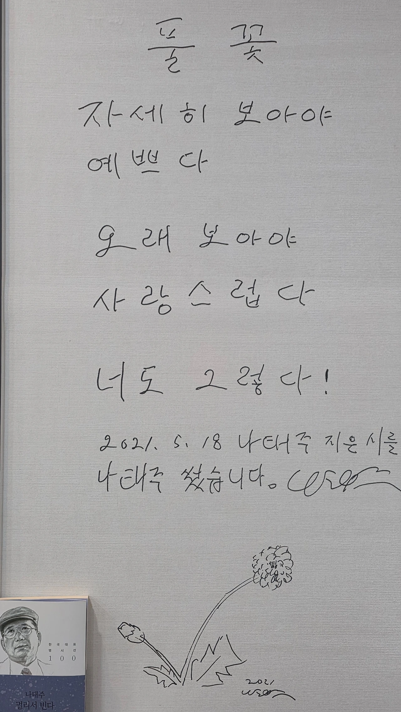 나태주 시인이 충남본부 강연 후 친필로 쓴 나태주 시 풀꽃