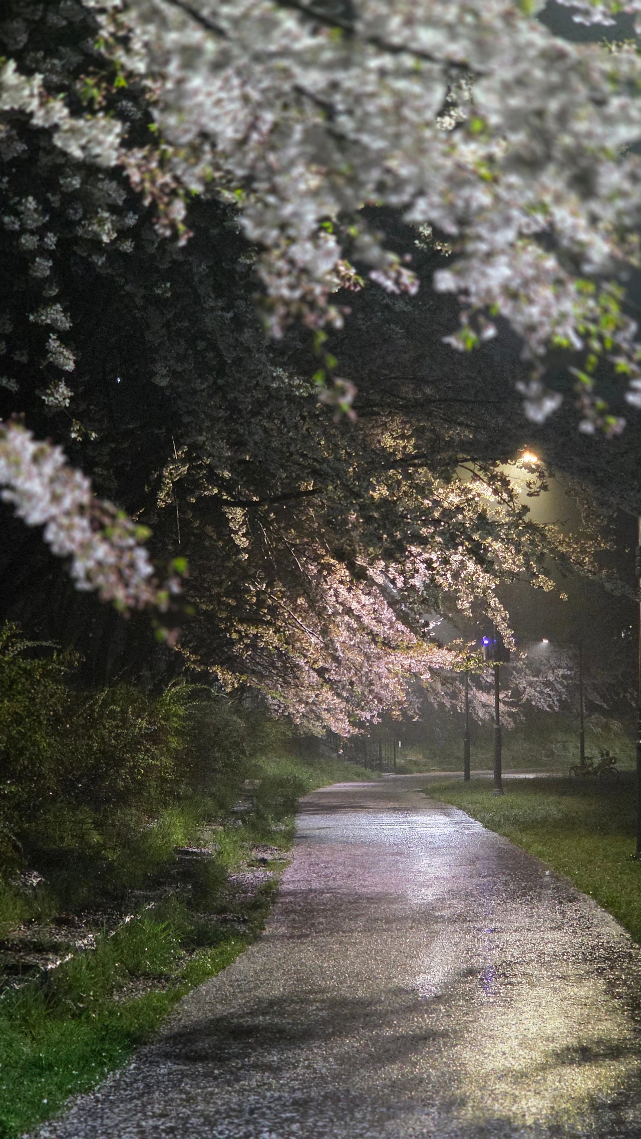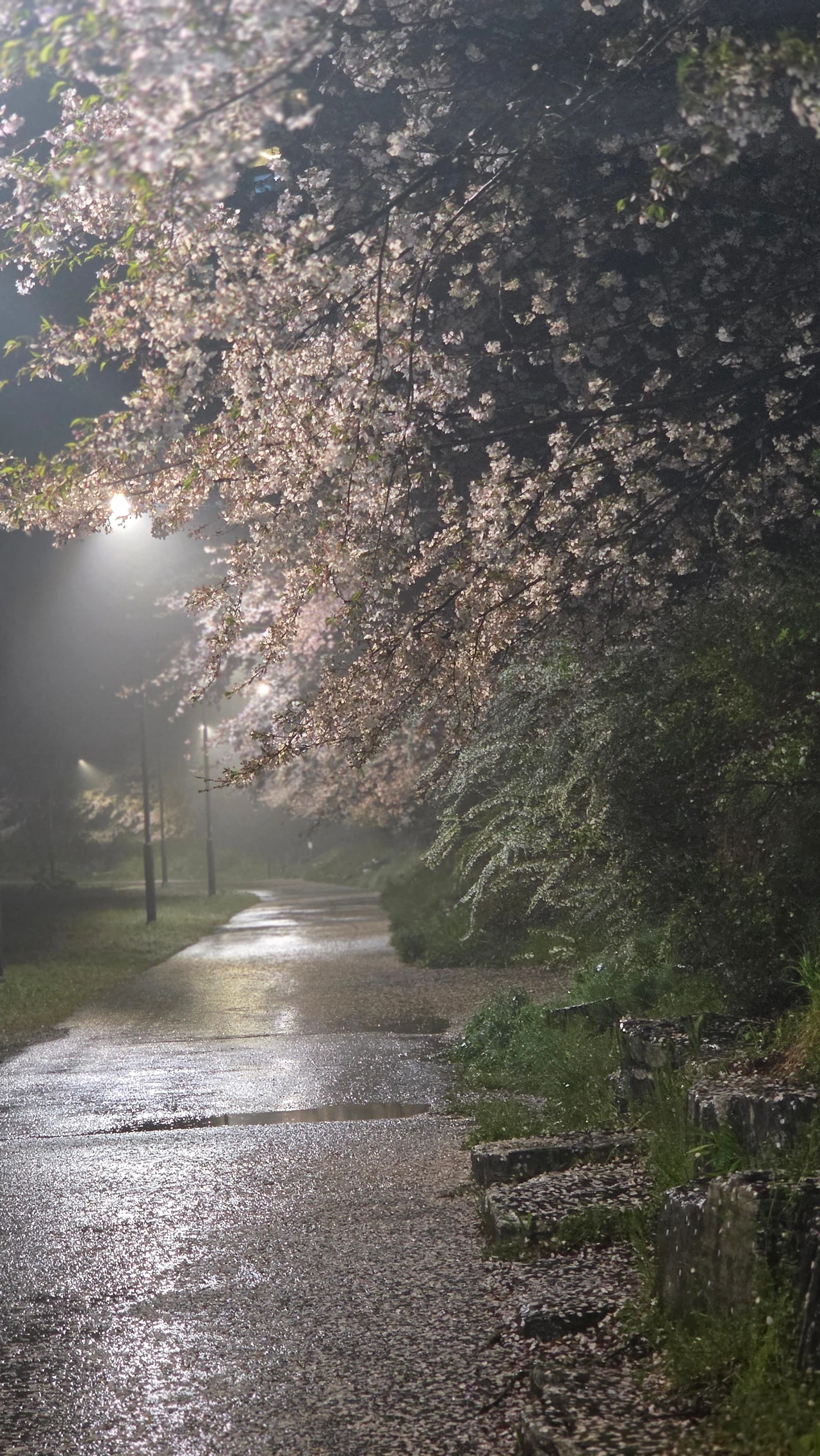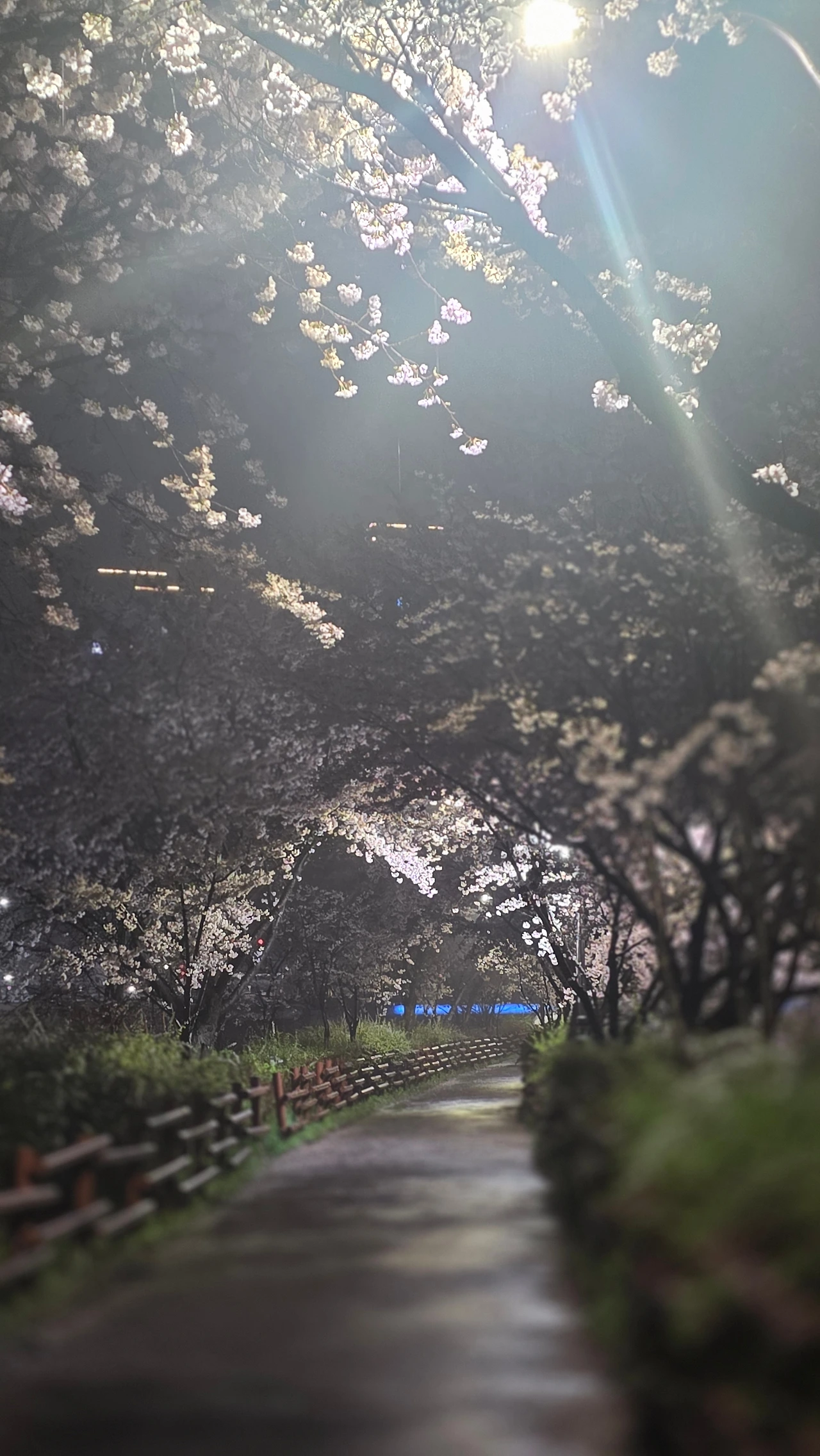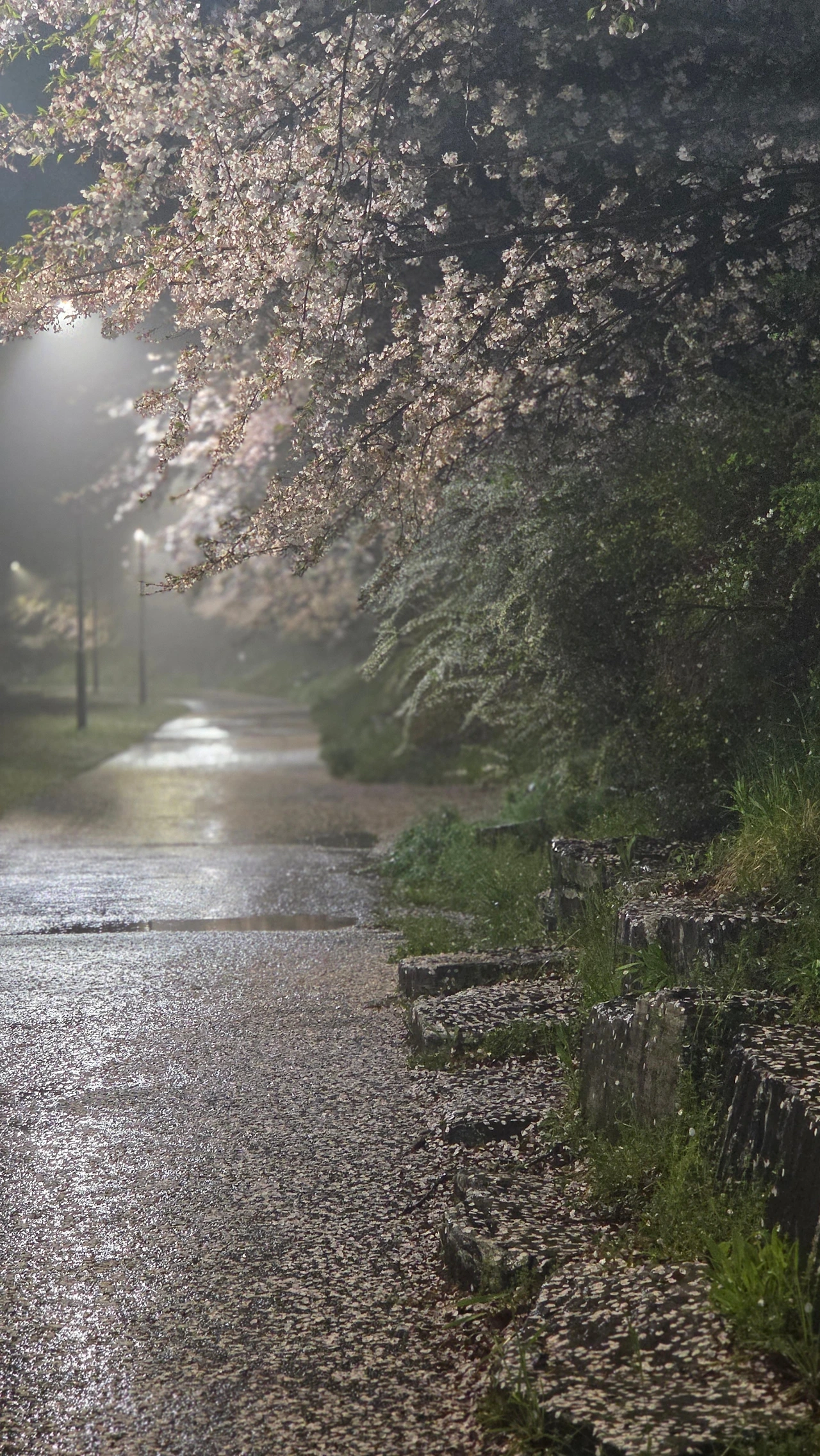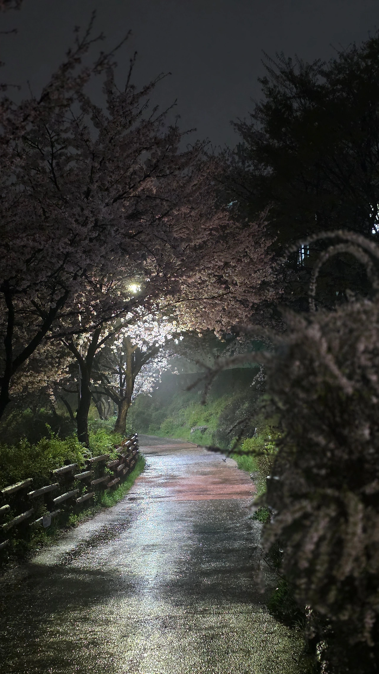 귀는 호강하고, 비를 머금은 벚꽃으로