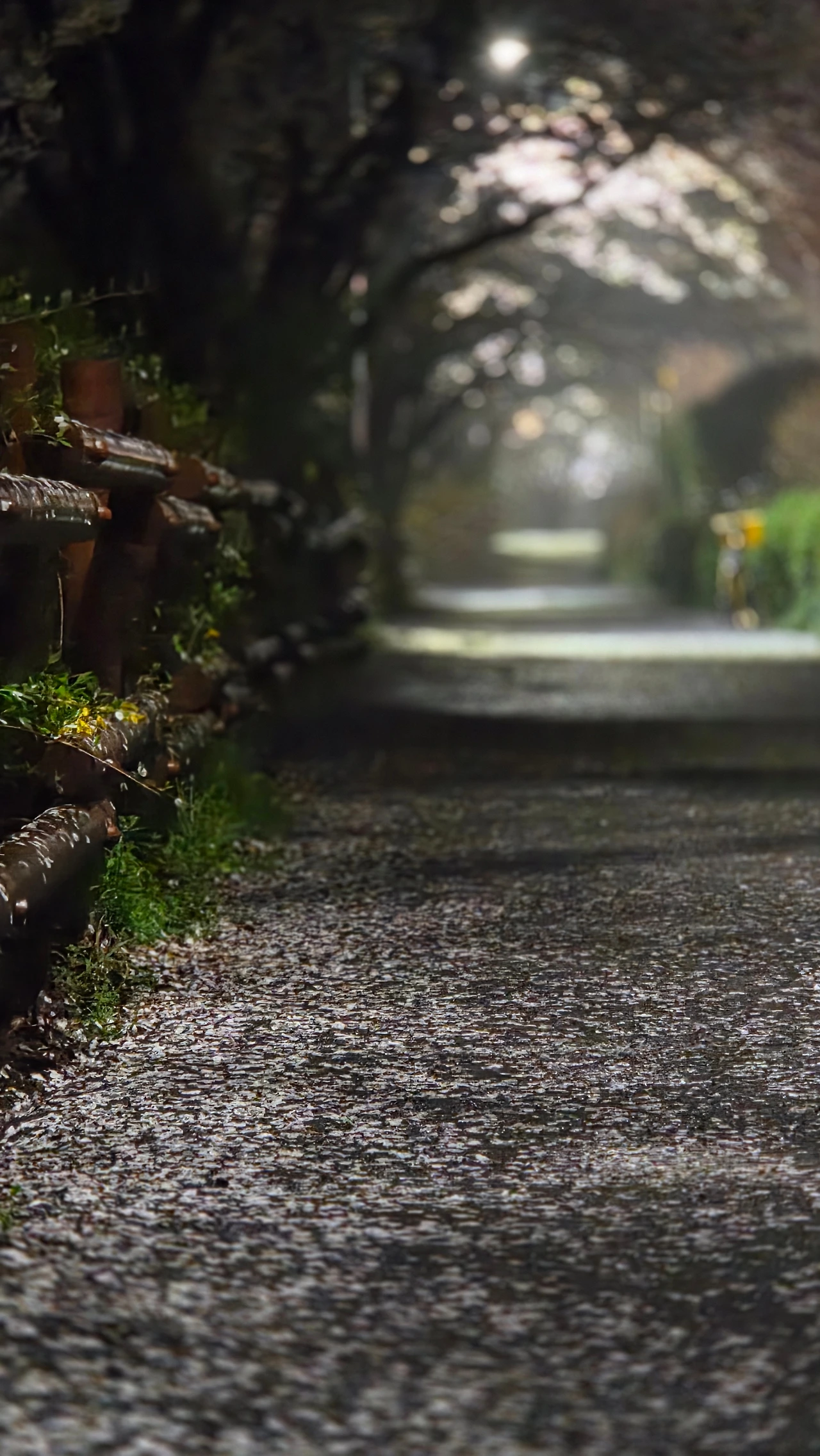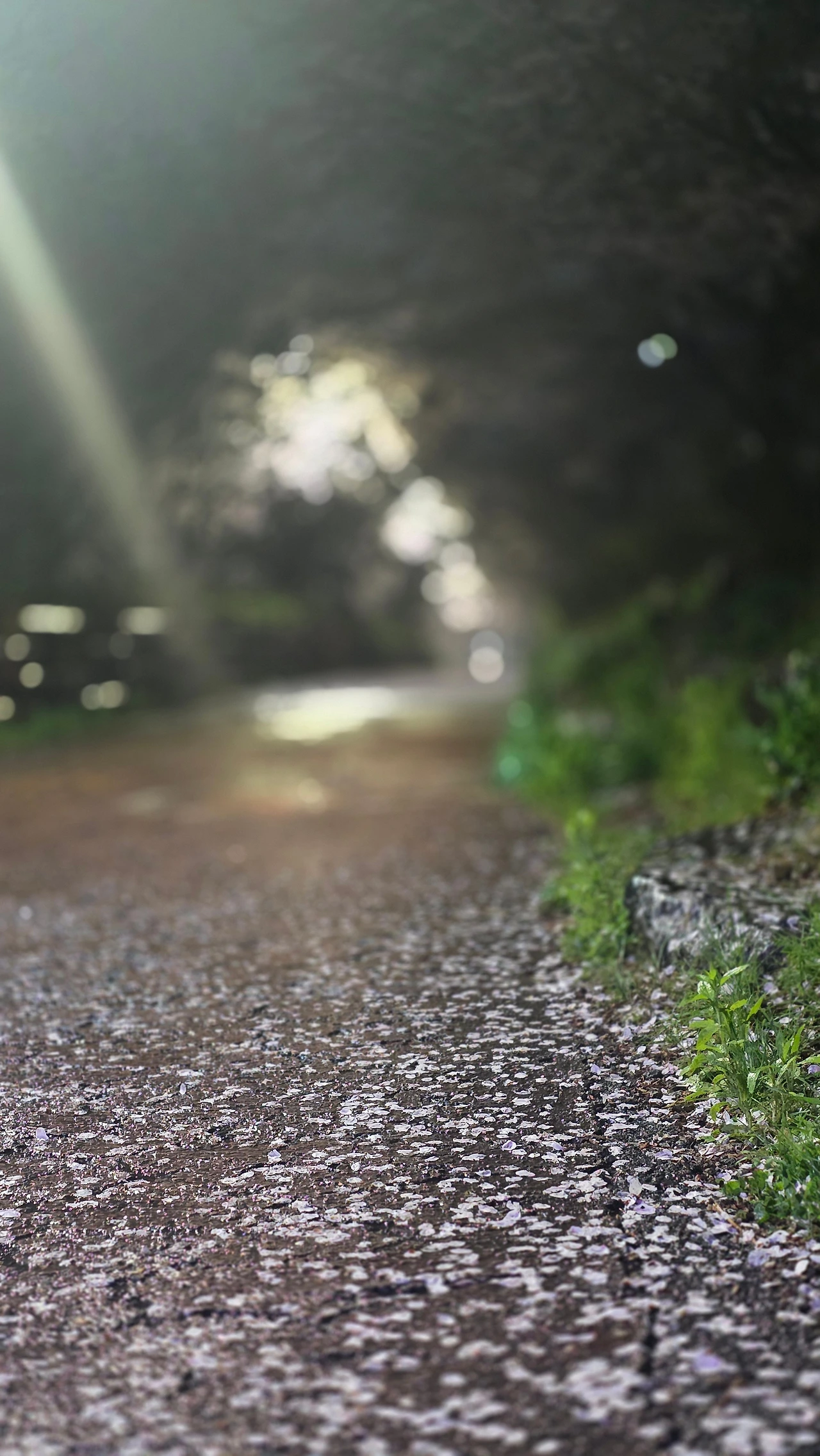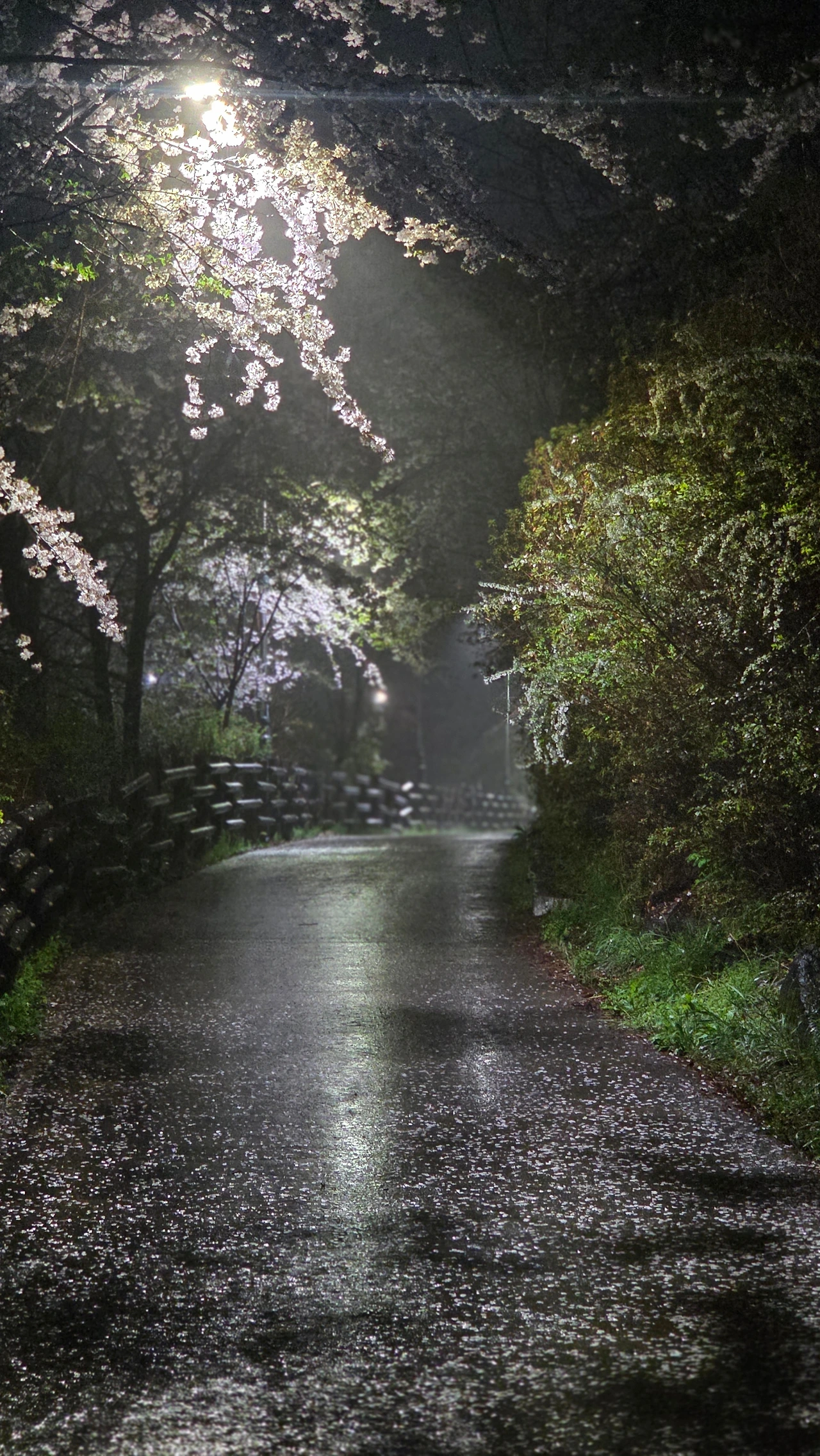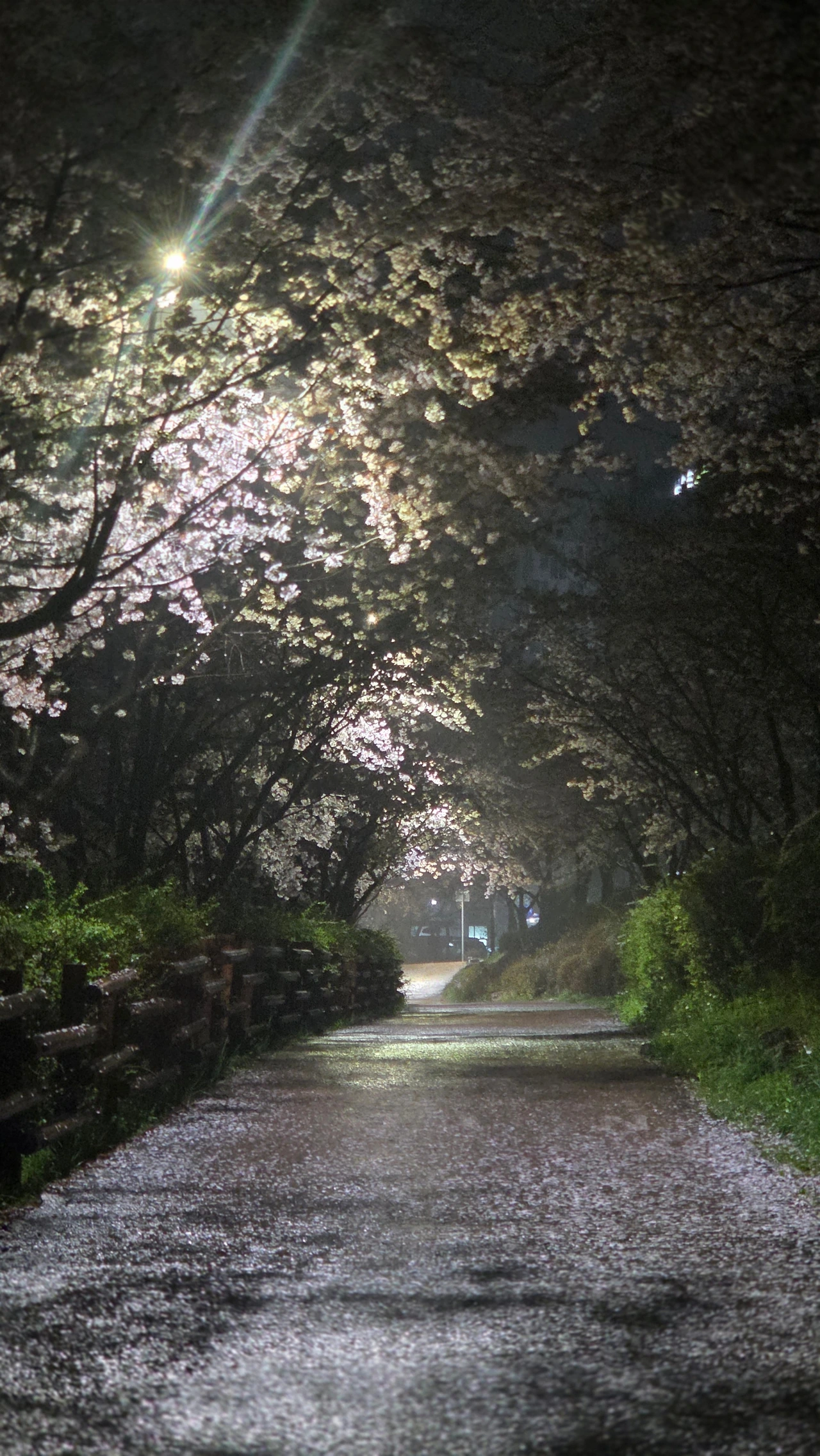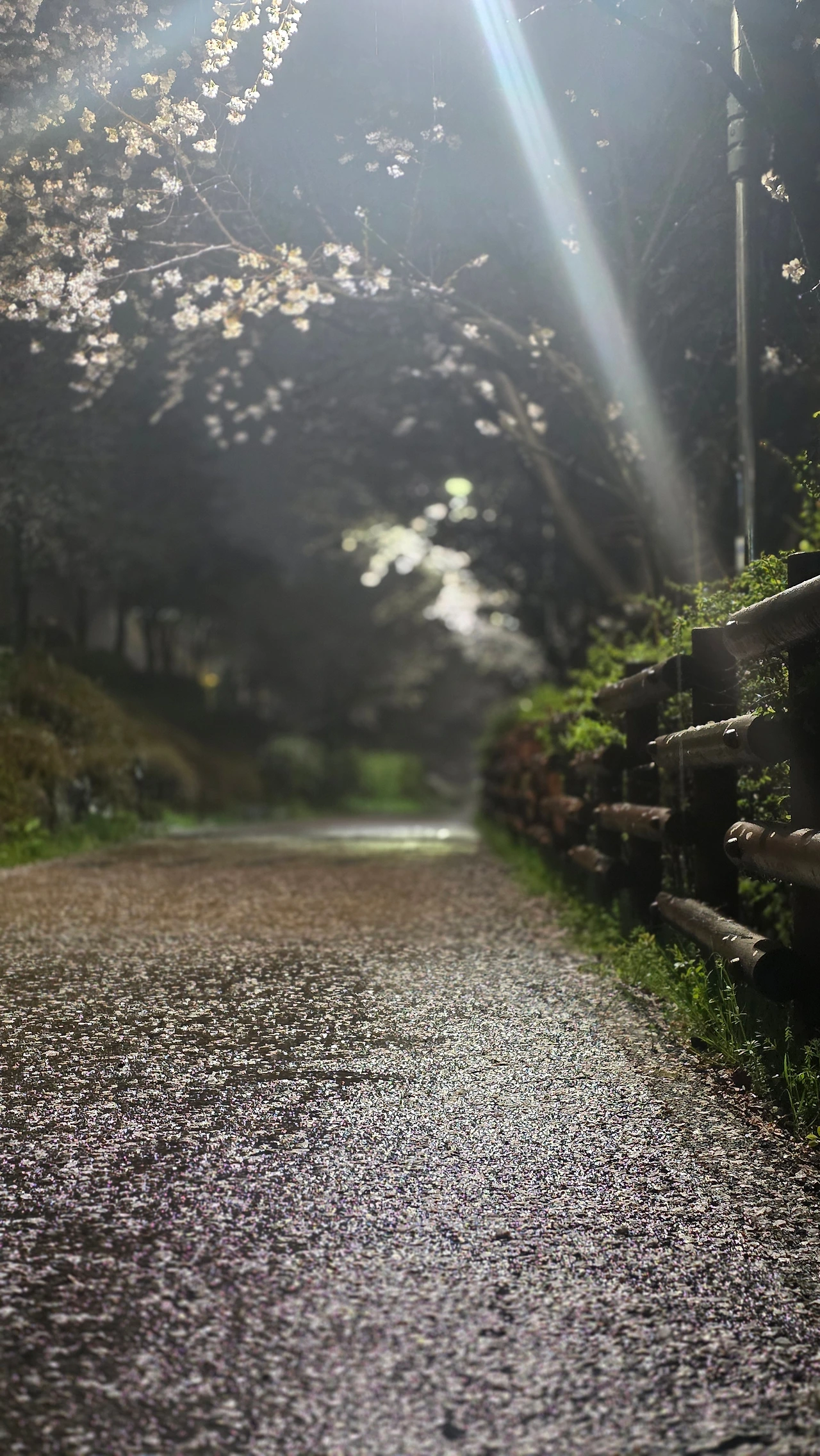 이내 비를 뿌려 벚꽃 잎을 땅바닥으로