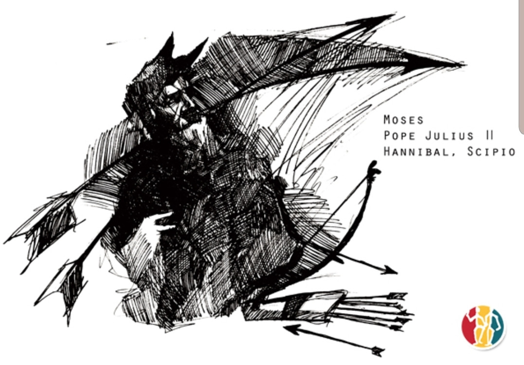 그가 조각한 율리우스 2세의 모습은, 대업을 이룬 모세의 형상이 공포감을 주는 뿔을 달고 괴물처럼 백성을 응시합니다.