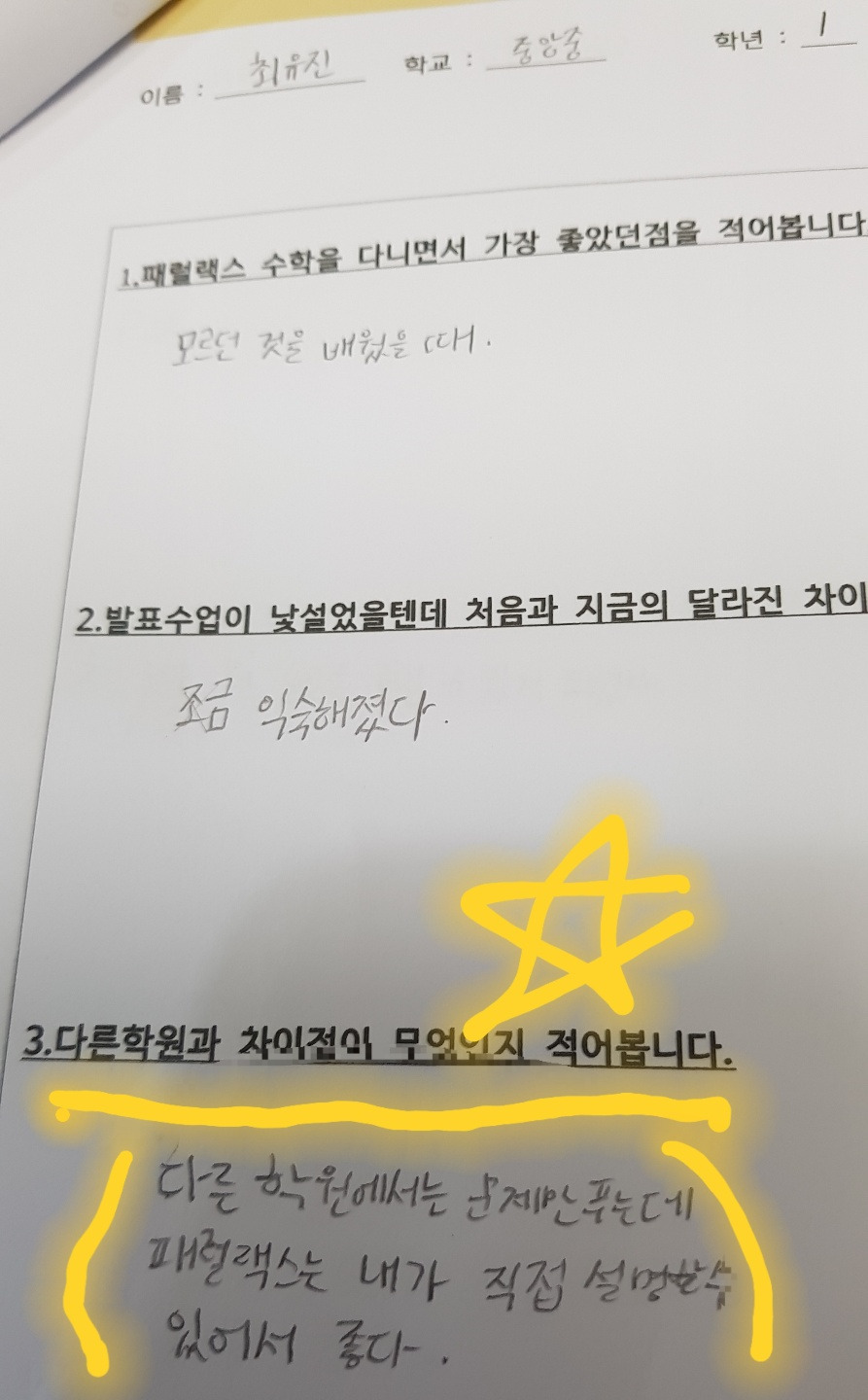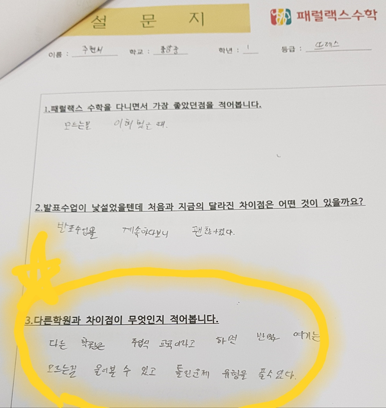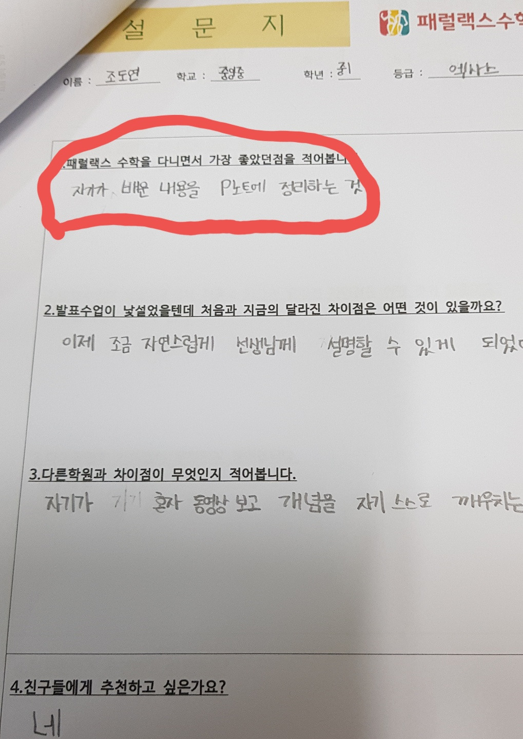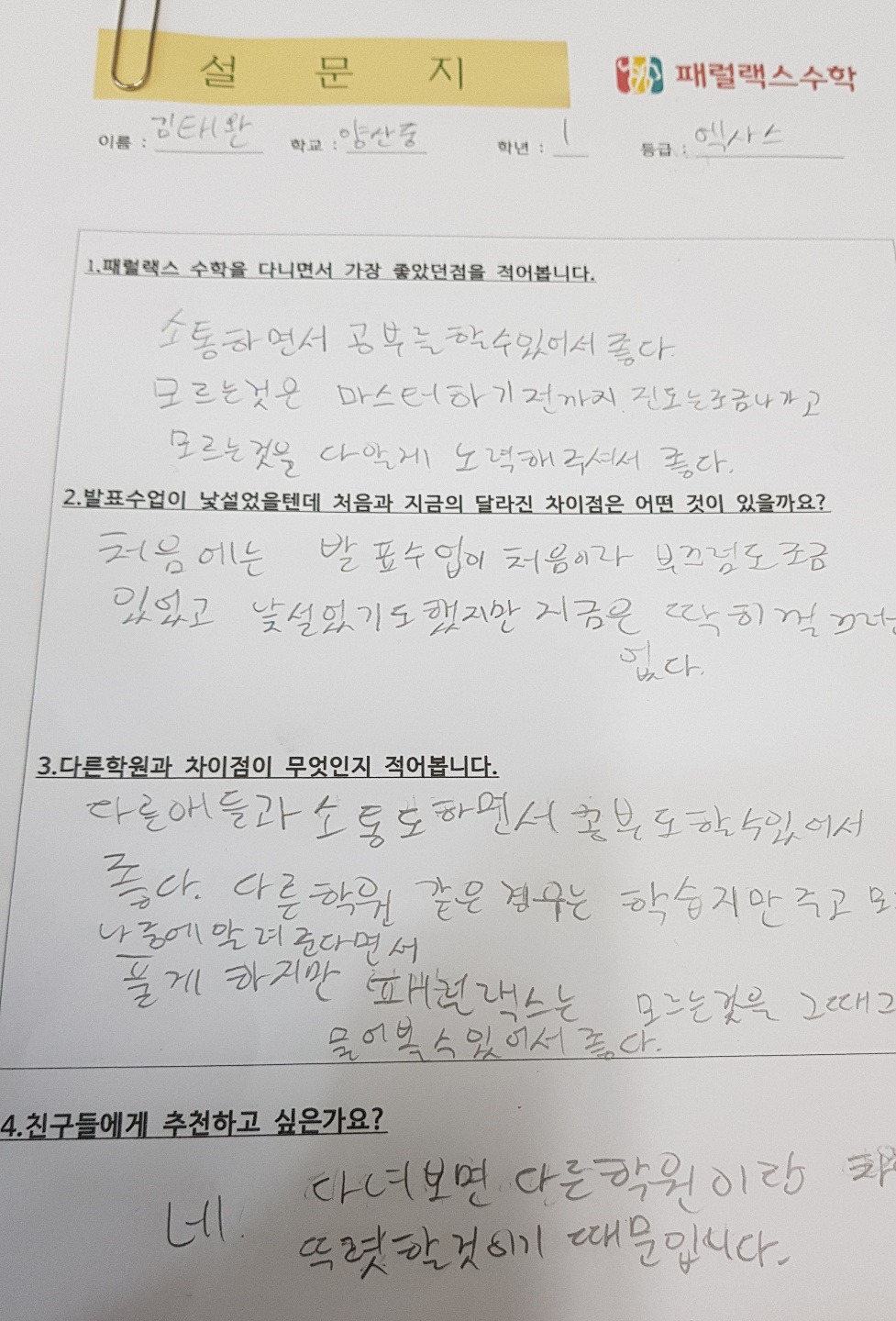 ● 패럴랙스 수학 9월 수업 후 학생들의 소감은