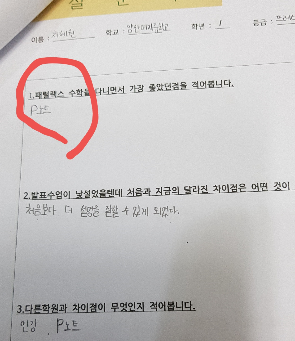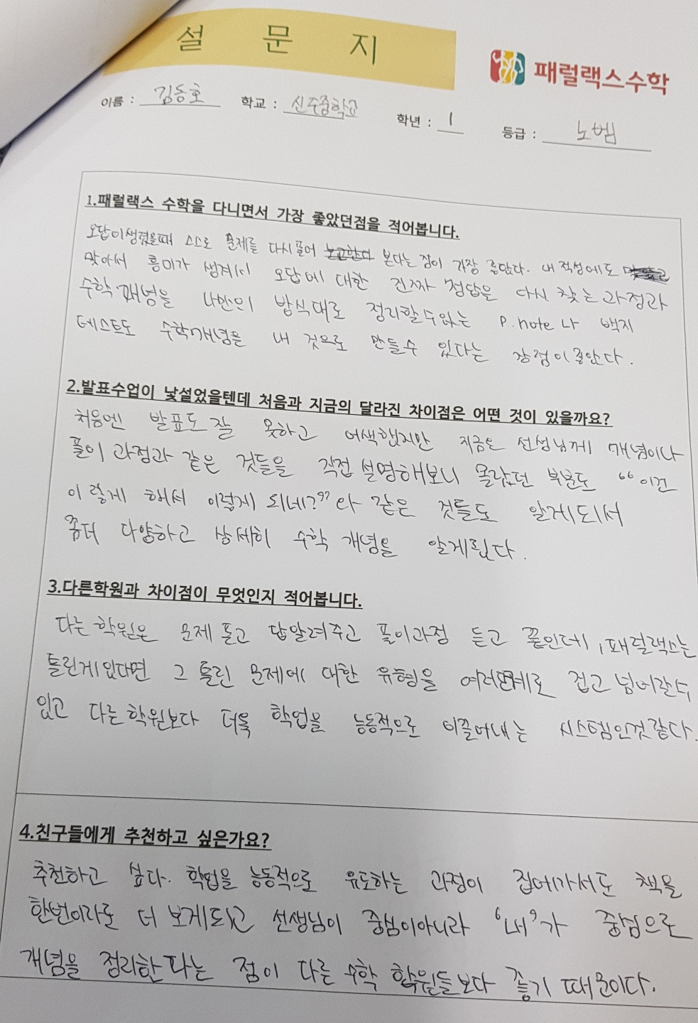 패럴랙스 수학 한 달 수업 후 소감문