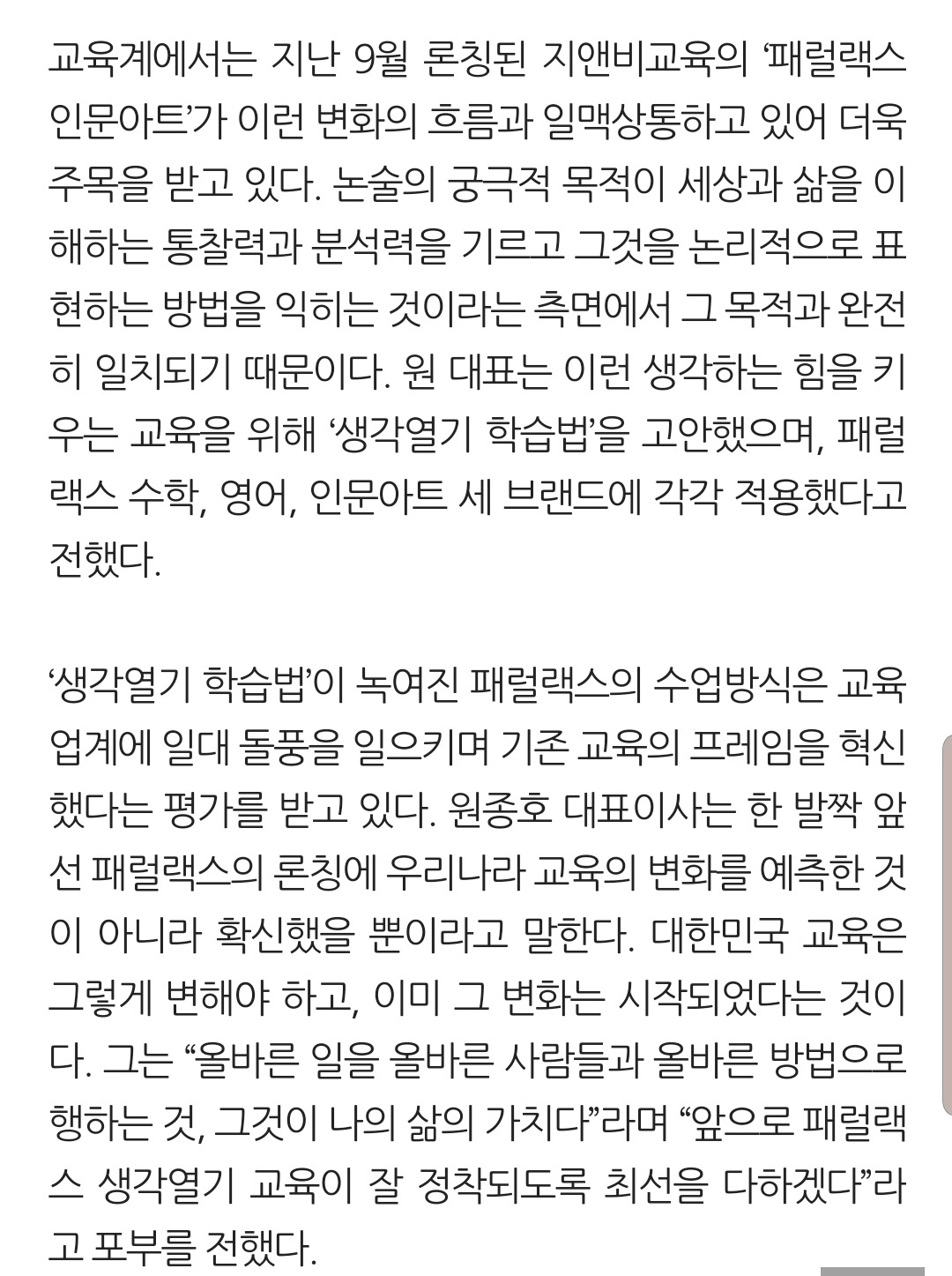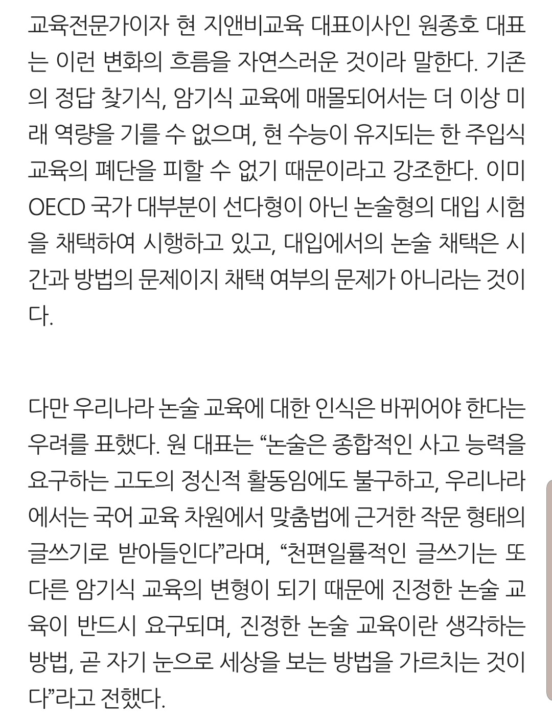 수능 논술 도입,지앤비 교육 원종호 대표 인터뷰 기사