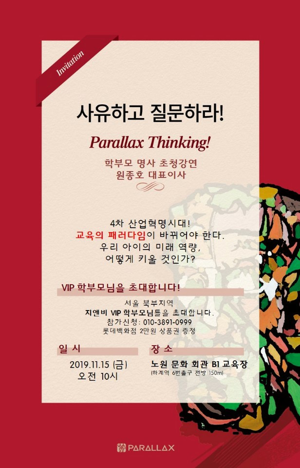 서울북부 본부 패럴랙스 학부모 세미나 있습니다.