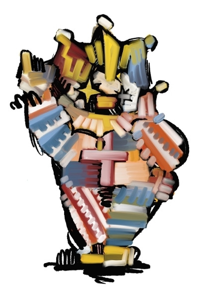 라파엘이 머리 위에 왕관을 쓰고 있다.