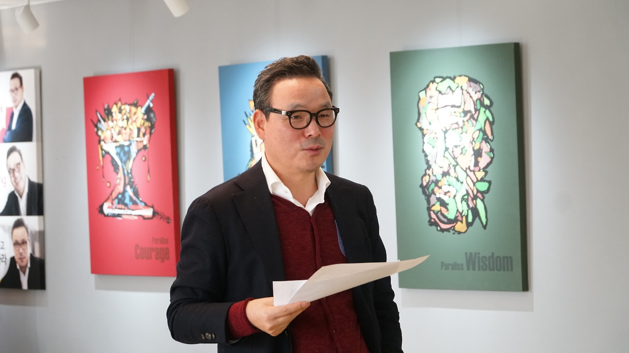 세 사람의 인자한 얼굴 모습을 다른 색깔로