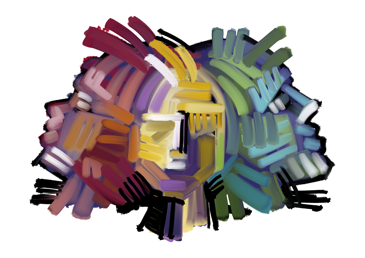 두 사람의 얼굴이 서로 겹쳐져 있는 모습이다.