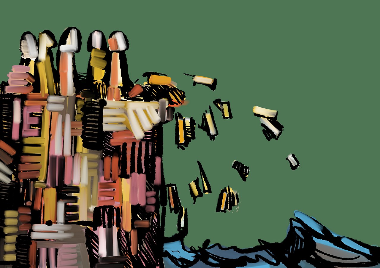 스케치 그림의 거친 파도는 용병을 의미하고