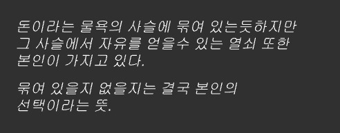 과도 같으나 돈에서 해방되면 그 고통도 즉시 없어