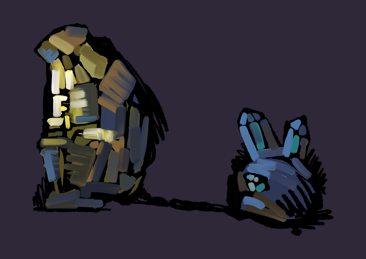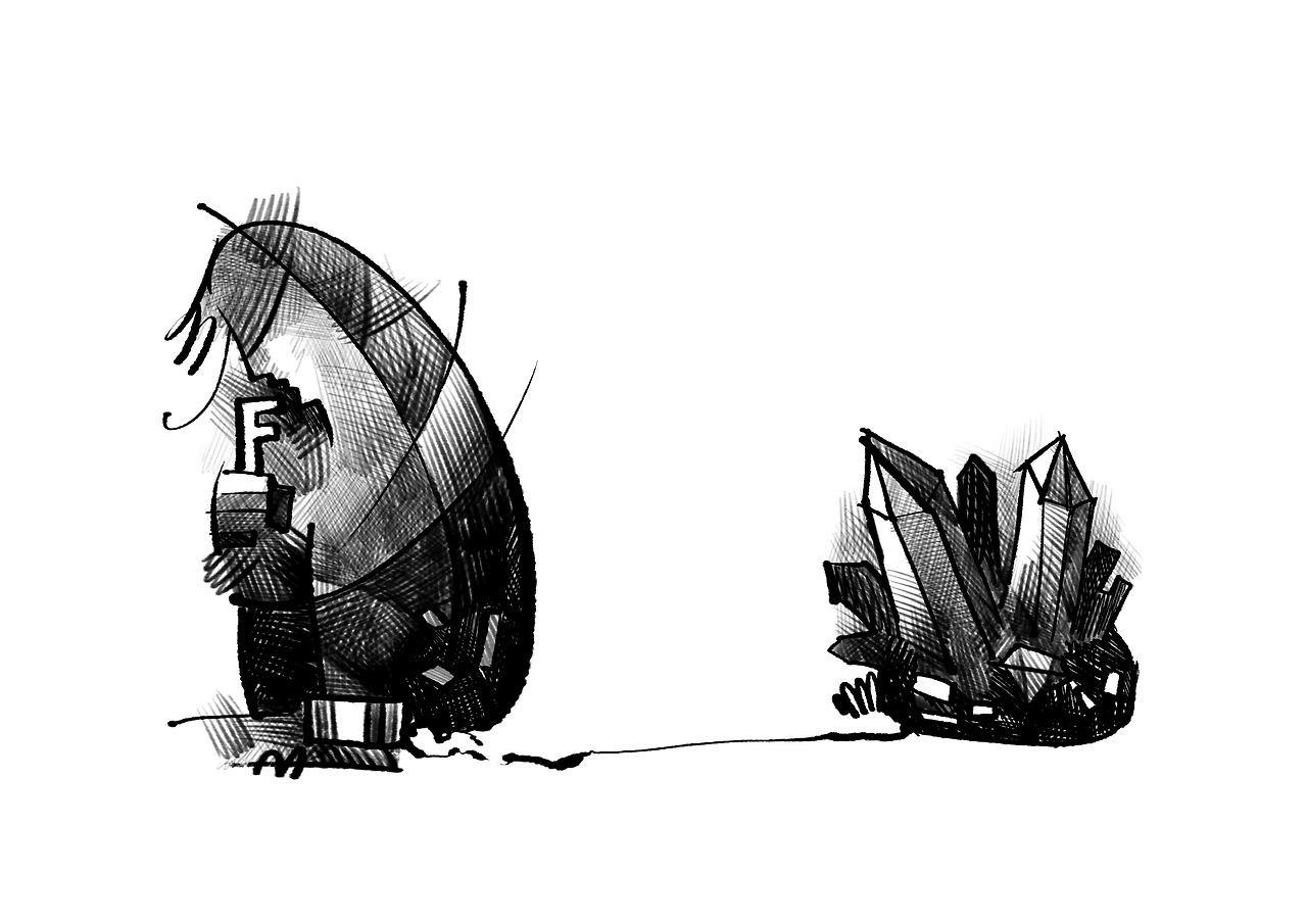 왼쪽 스케치는 돈이라는 물욕이 사슬에 묶여있는