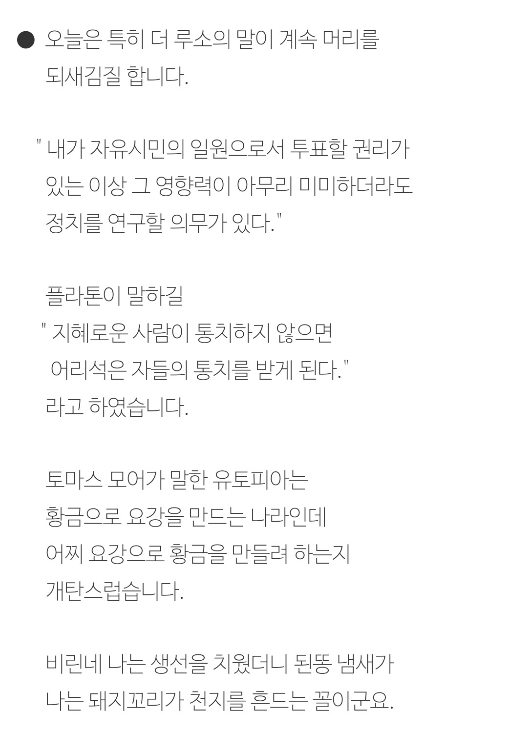 글은 작가에 의해 쓰여지지만 그 글을 사유하고 질문하는 누군가에 의해 서서히 완성되어 간다. 지식이 범생이의 모범답안지에 기여하기보다는 야성적 충동가의 혁신도구이기를 바라며 ~~