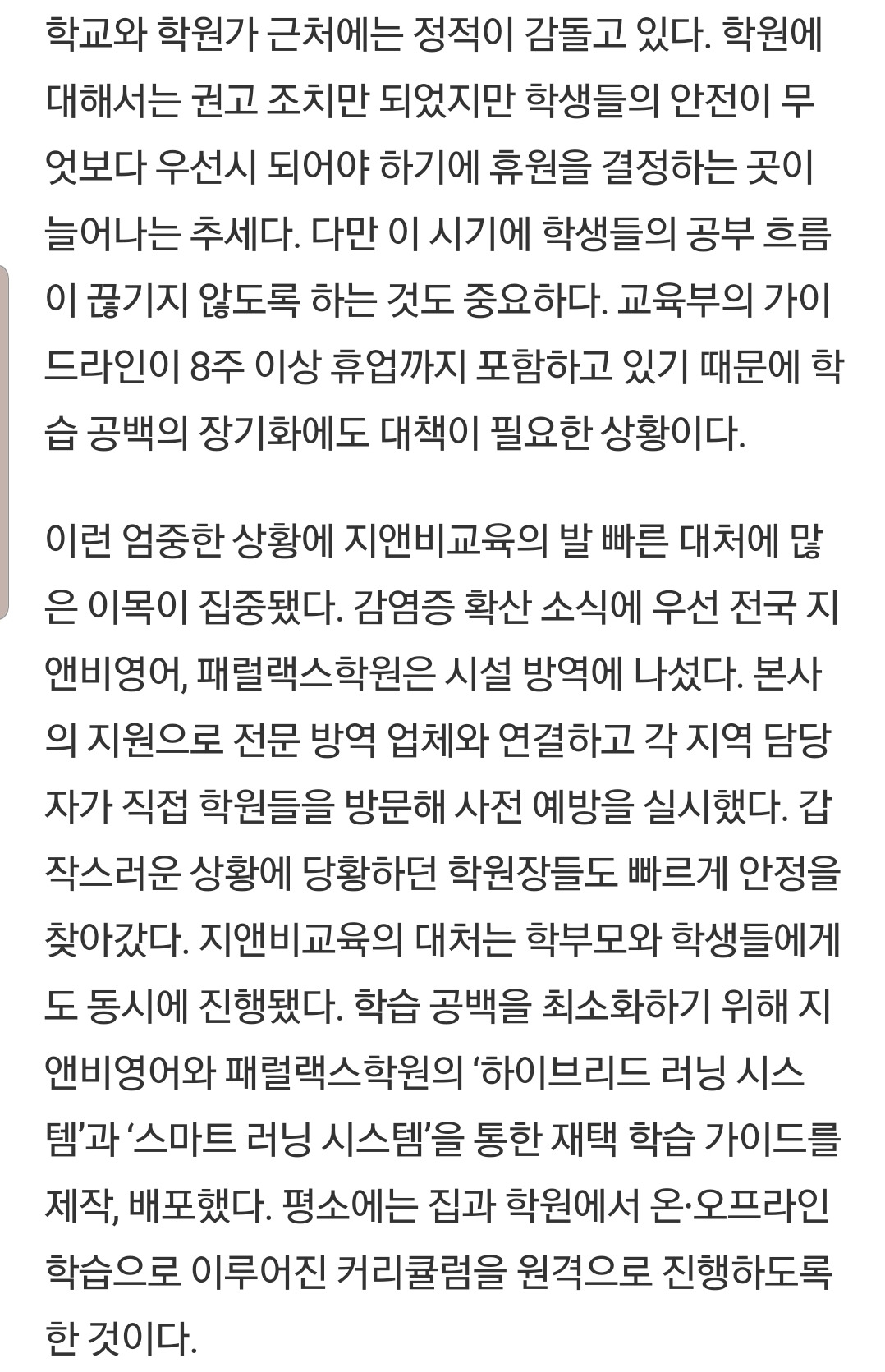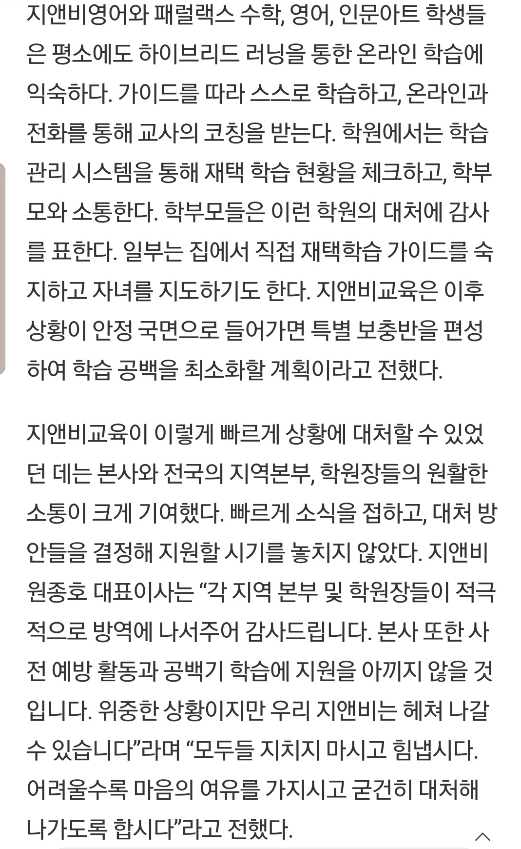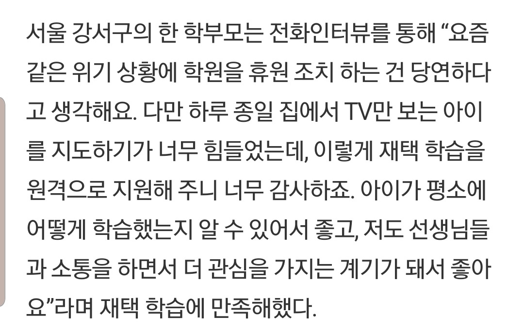 지앤비 교육,학원 휴원에 따른 재택학습
