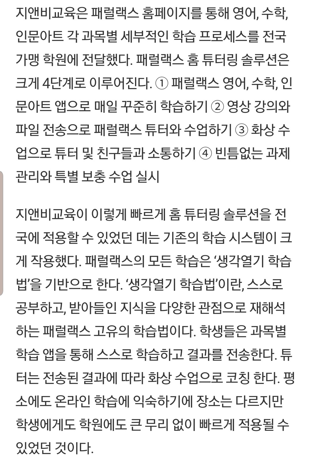 지앤비 교육,패럴랙스 신문기사