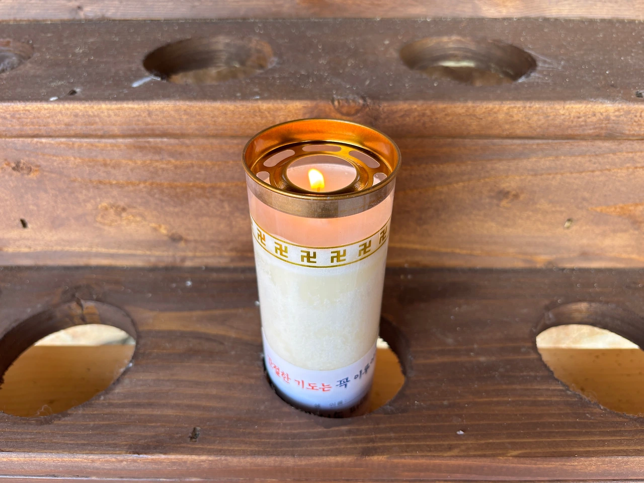 작은 초는 3일 정도 탄다고 한다. 초 앞에 소원을 적은 스티커를 붙이고 경건하게 불을 붙여서 올렸다. 저 촛불에 화나는 마음이 다 태워지길. 국민들의 울화가 씻은 듯이 나아지길.