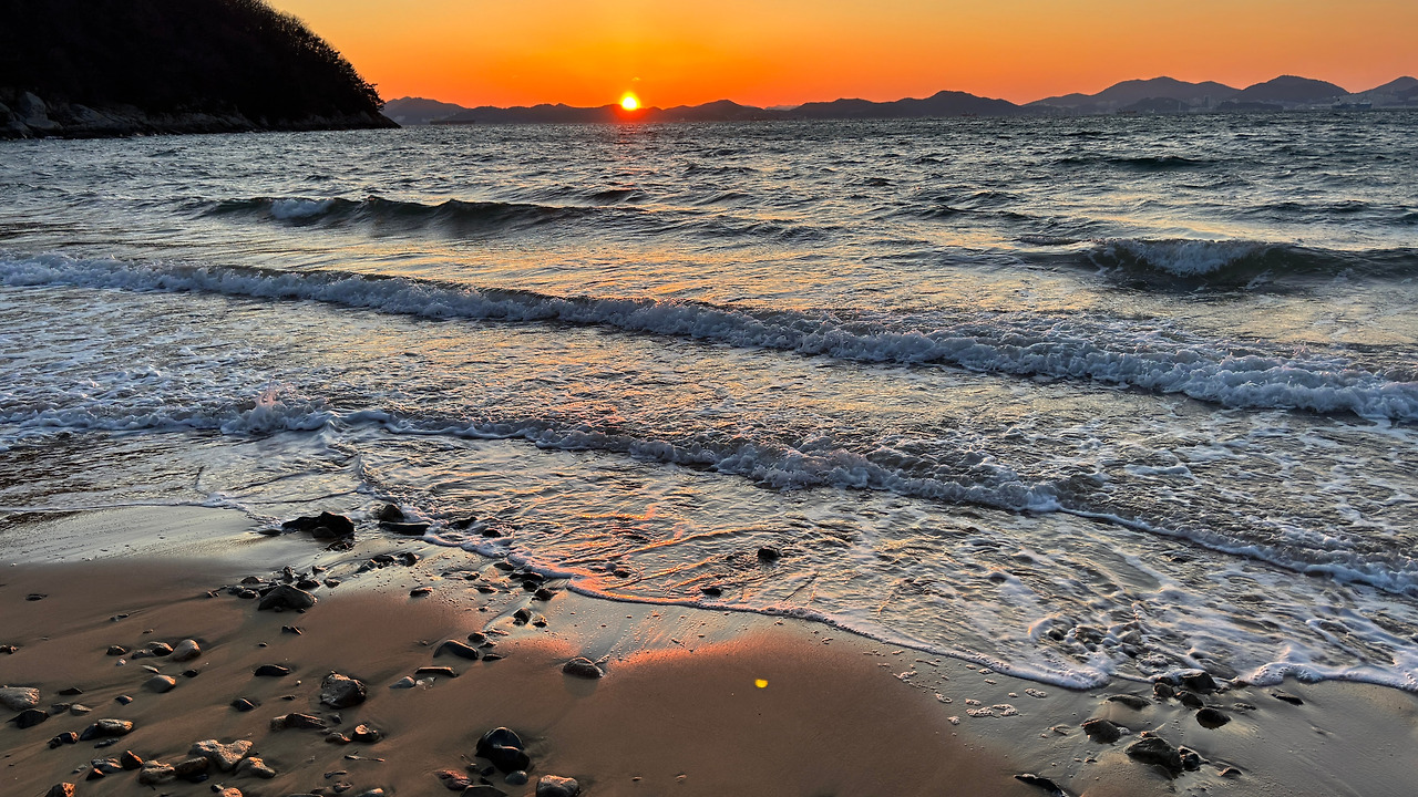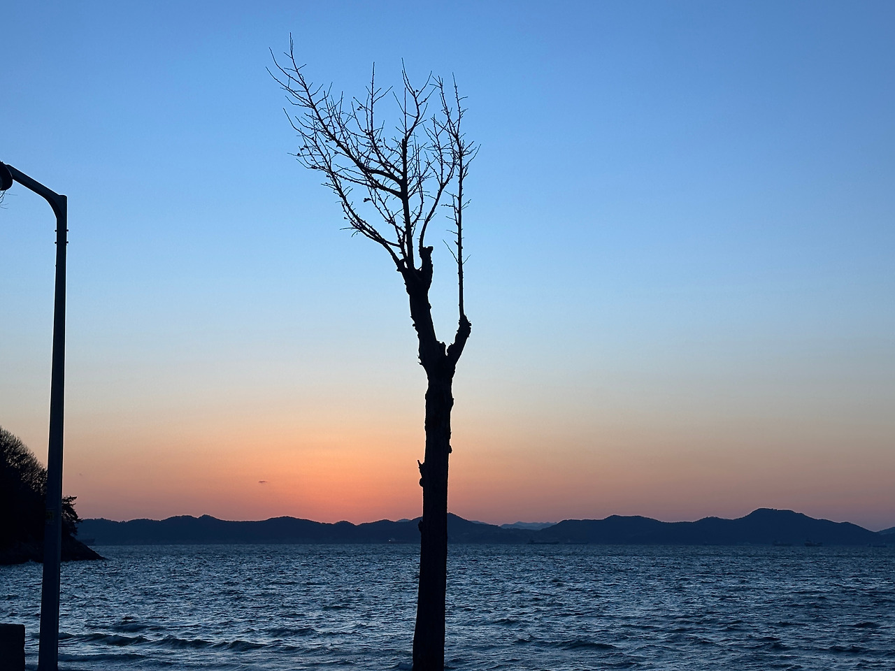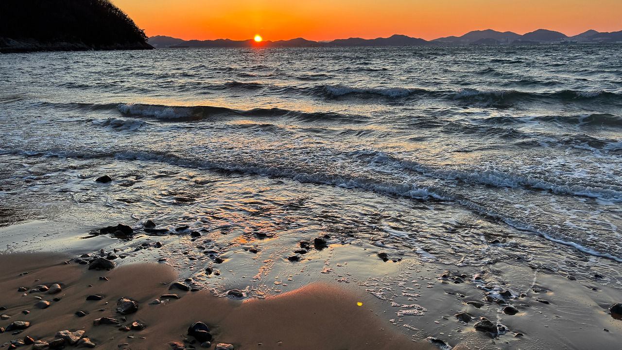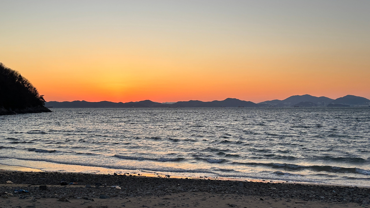 부산에도 바다가 많고, 또 일몰이 아름다운 곳도 있다. 내가 제일 좋아하는 바다는 다대포 바다인데(이 바다가 이날 얼었다고 한다), 여기 일몰이 정말 아름답다. 그래서 가끔 찾아가는데, 사촌해수욕장의 일몰은 부산의 바다와는 또 다른 모습의 일몰이라 넋을 놓고 계속 봤다.