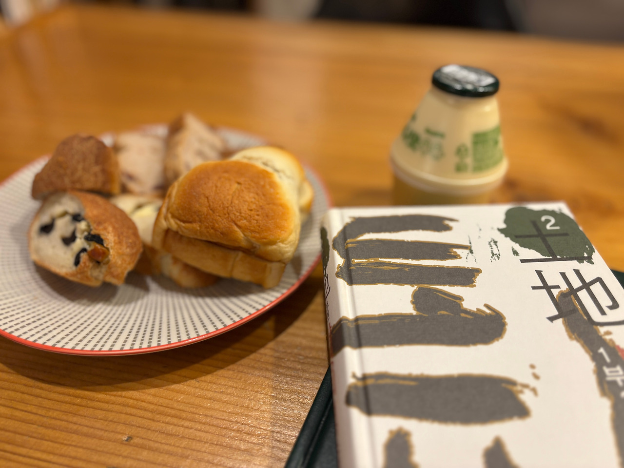 [토지] 읽으면서 저녁식사. 남해는 다 좋은데, 혼자서 식사할 곳이 마땅치가 않다. 식당들이 빨리 문을 닫기도 하지만, 1인분이 가능한 식당도 잘 없다. 물론 찾으면 있겠지만, 내가 먹고 싶은 건 1인분을 안 판다. 남해에 자주 오고 싶어도 망설여지는 이유 중 하나가 식사문제. 남해 친구 사귀고 싶다. 그럼 내가 밥은 늘 사줄 텐데. 남해친구 급구다. 아무튼 그래서 저녁으로 먹으려고 부산에서부터 빵을 사 왔다. 먹는 것에 있어서는 아주 계획적인 먹제이(먹J) 되시겠다.